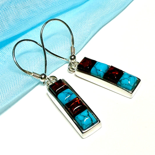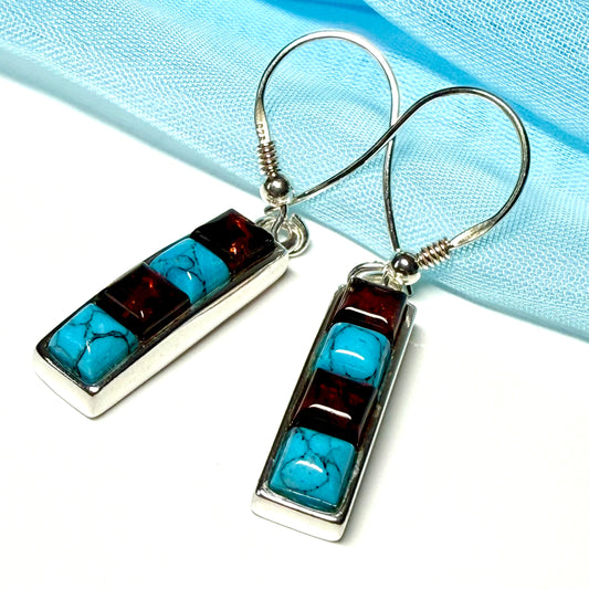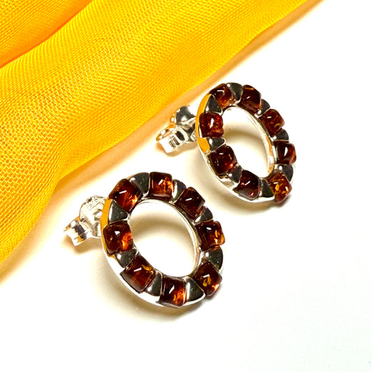 Soft warm orange Amber set in sterling silver. This natural gemstone that is created from tree resin has unique inclusions that sparkle when they catch the light especially when complimented by silver. Classic drop earrings as well as studs to choose for your loved one, or maybe a treat for yourself,