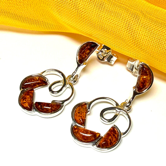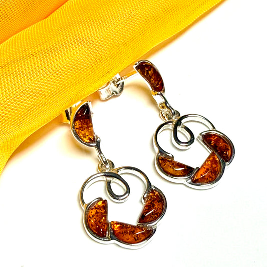 Earrings real amber drop earrings with a scrolled pattern sterling silver
