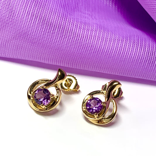 9 Carat yellow gold amethyst oval cut claw set stud earrings