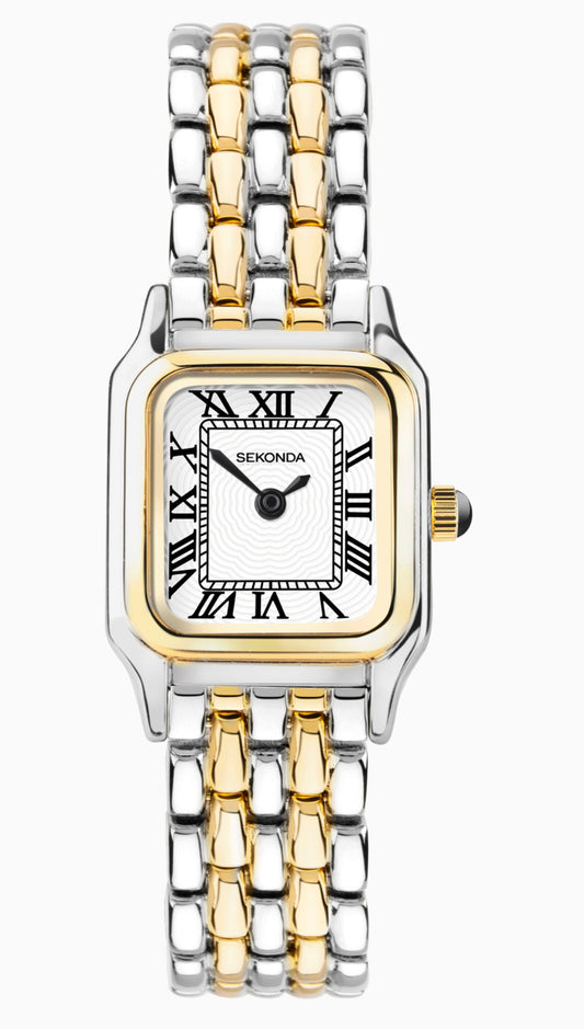 40125 Sekonda watch ladies two tone silver and gold plated bracelet clear Roman dial