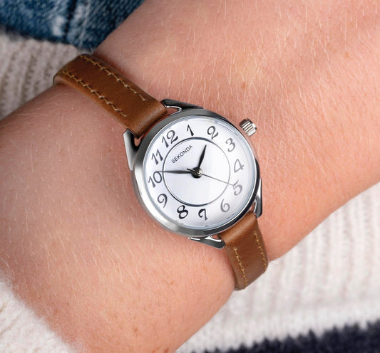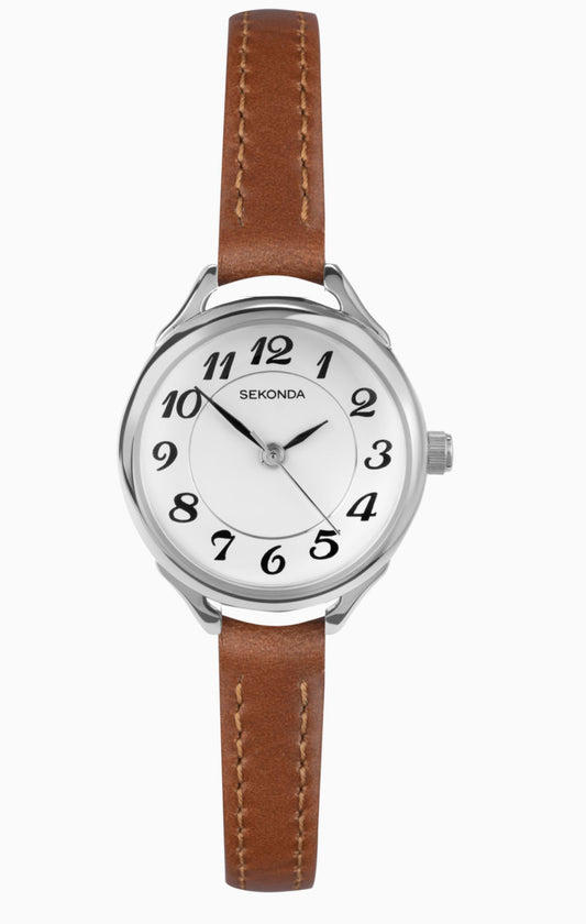 40479 Sekonda Round Watch Ladies Clear Arabic Dial Brown Strap