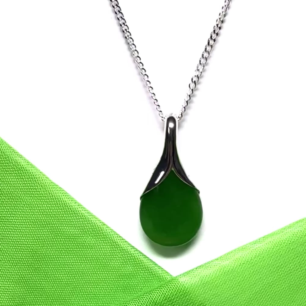 Why not embrace the allure of a real jade necklace with this stunning pear shaped sterling silver pendant necklace