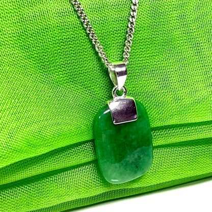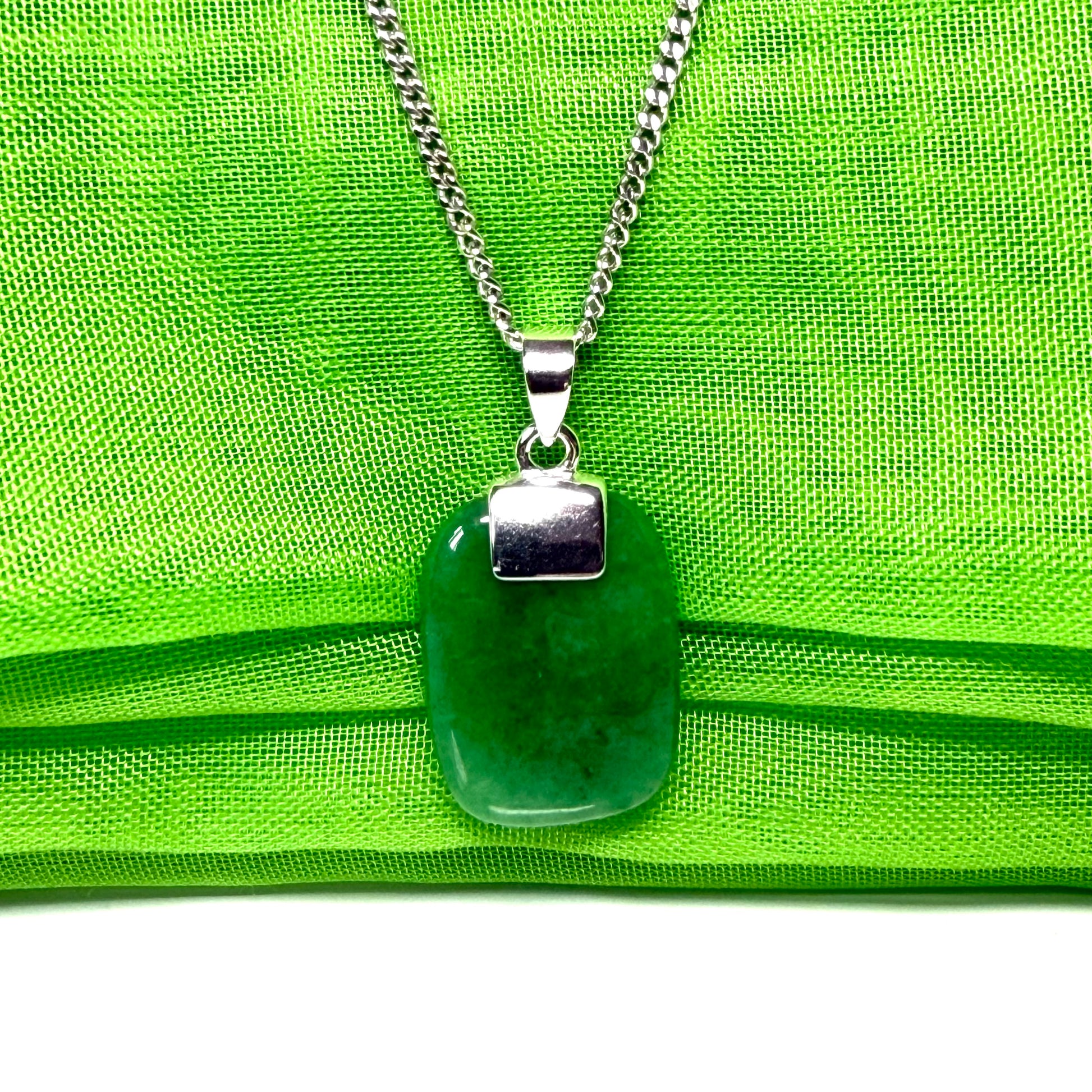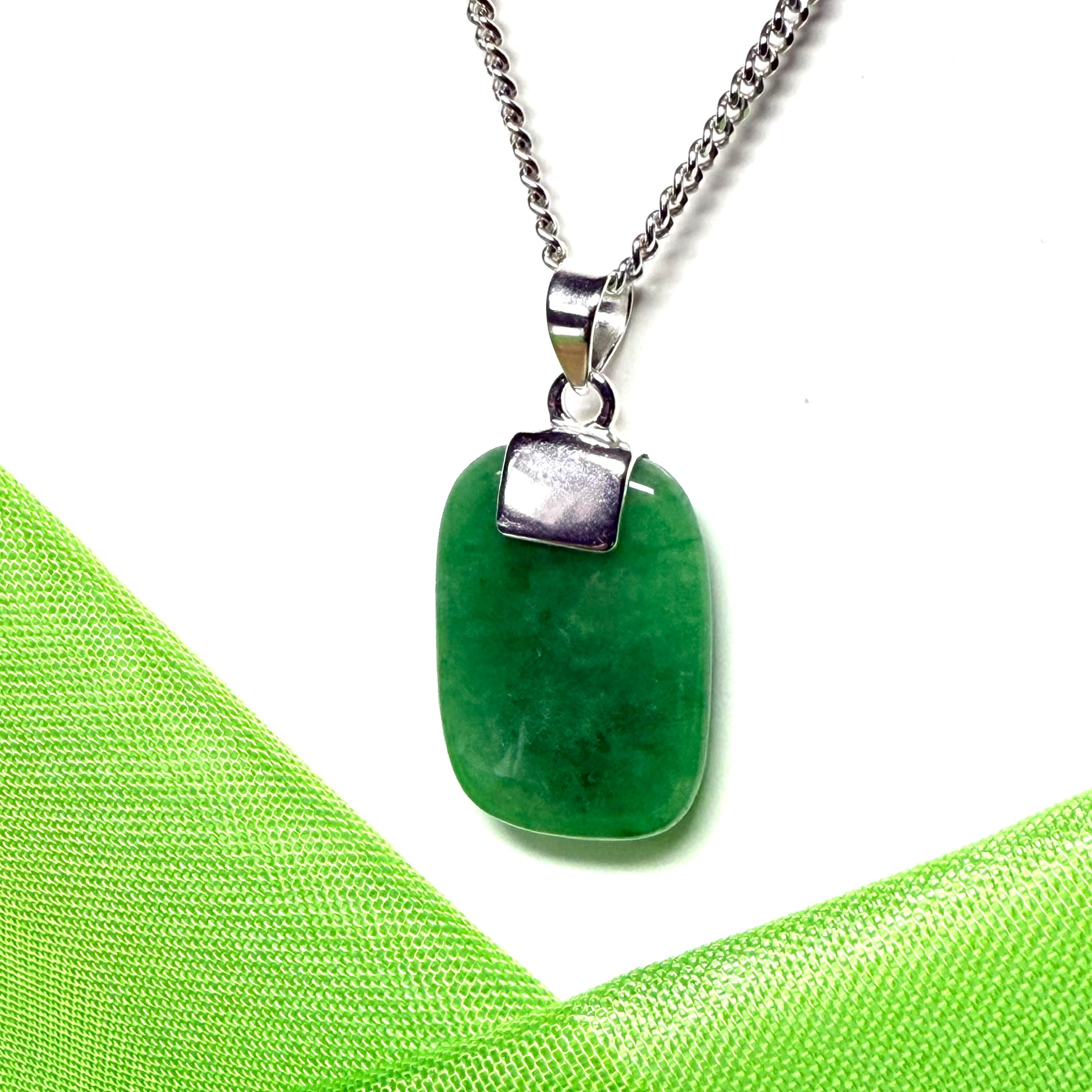 A stunning sterling silver cushion shaped real green jade necklace pendant with a chain included