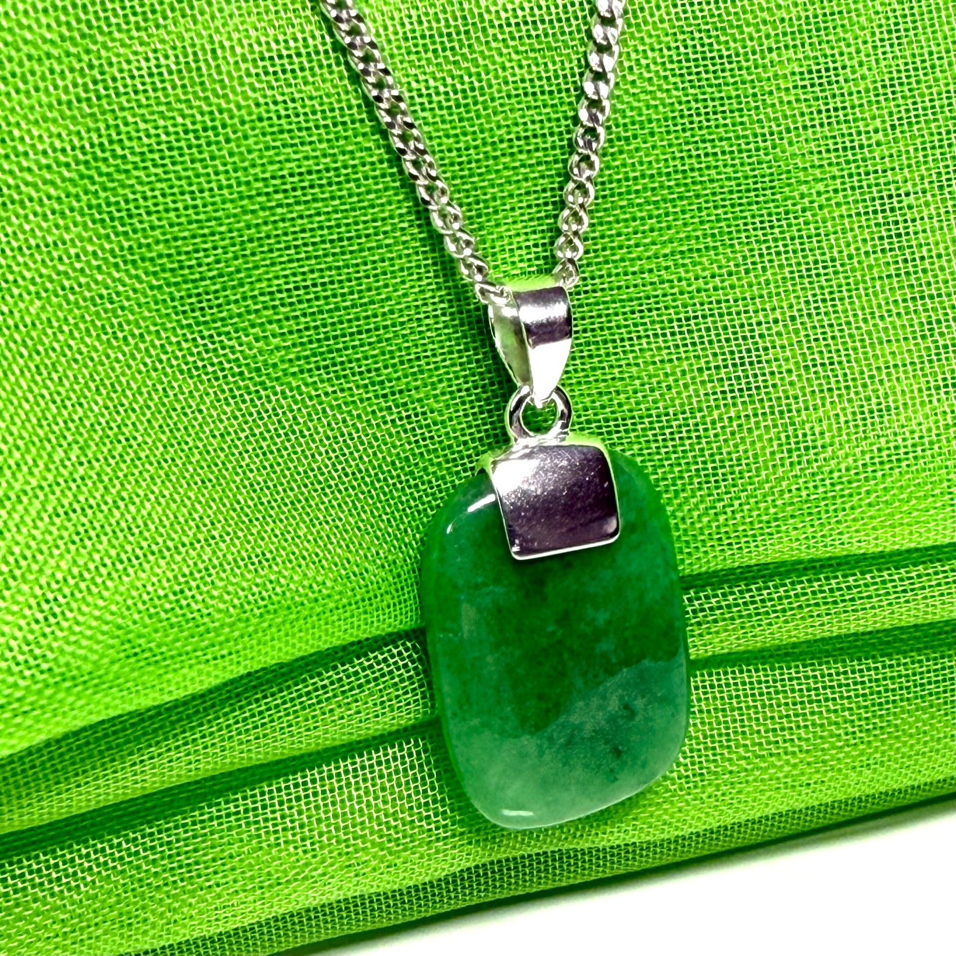 Why not add a touch of elegance to your outfit with this stunning cushion shaped silver real green jade necklace