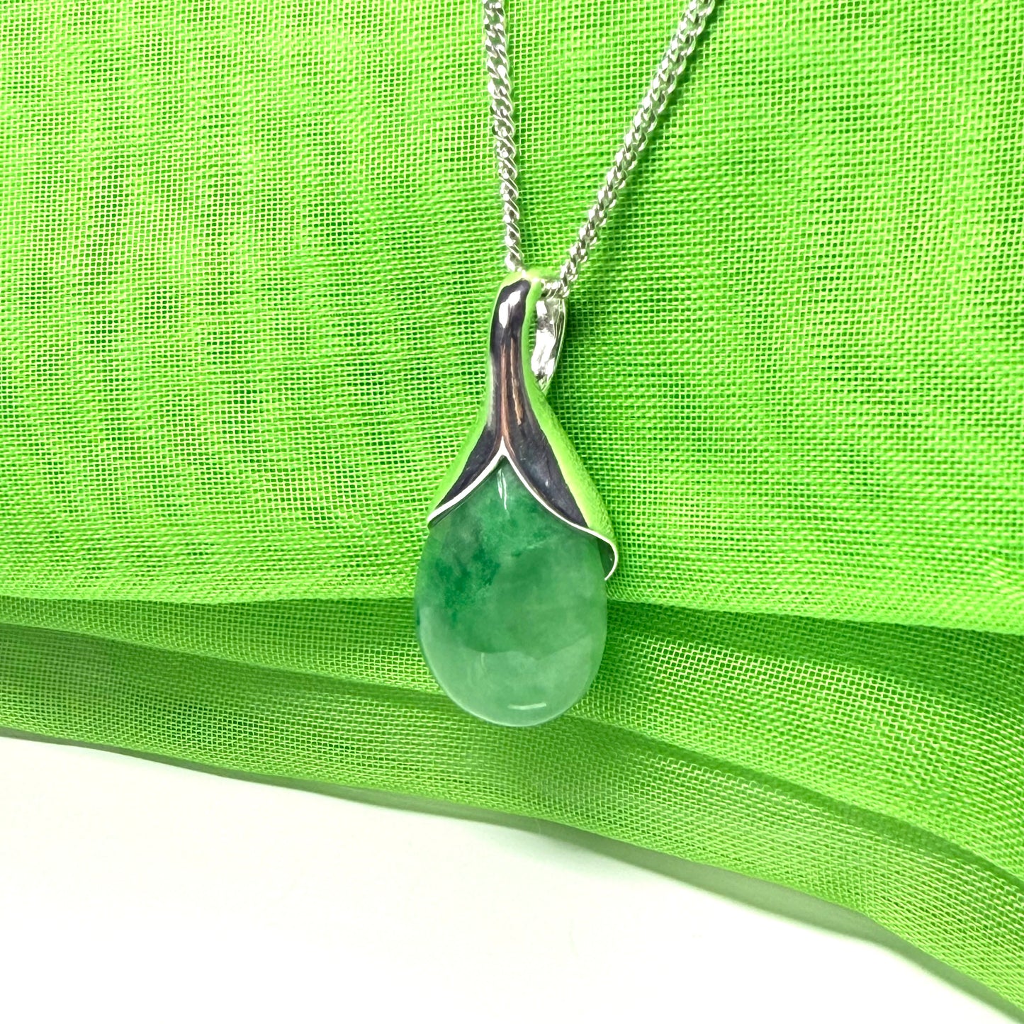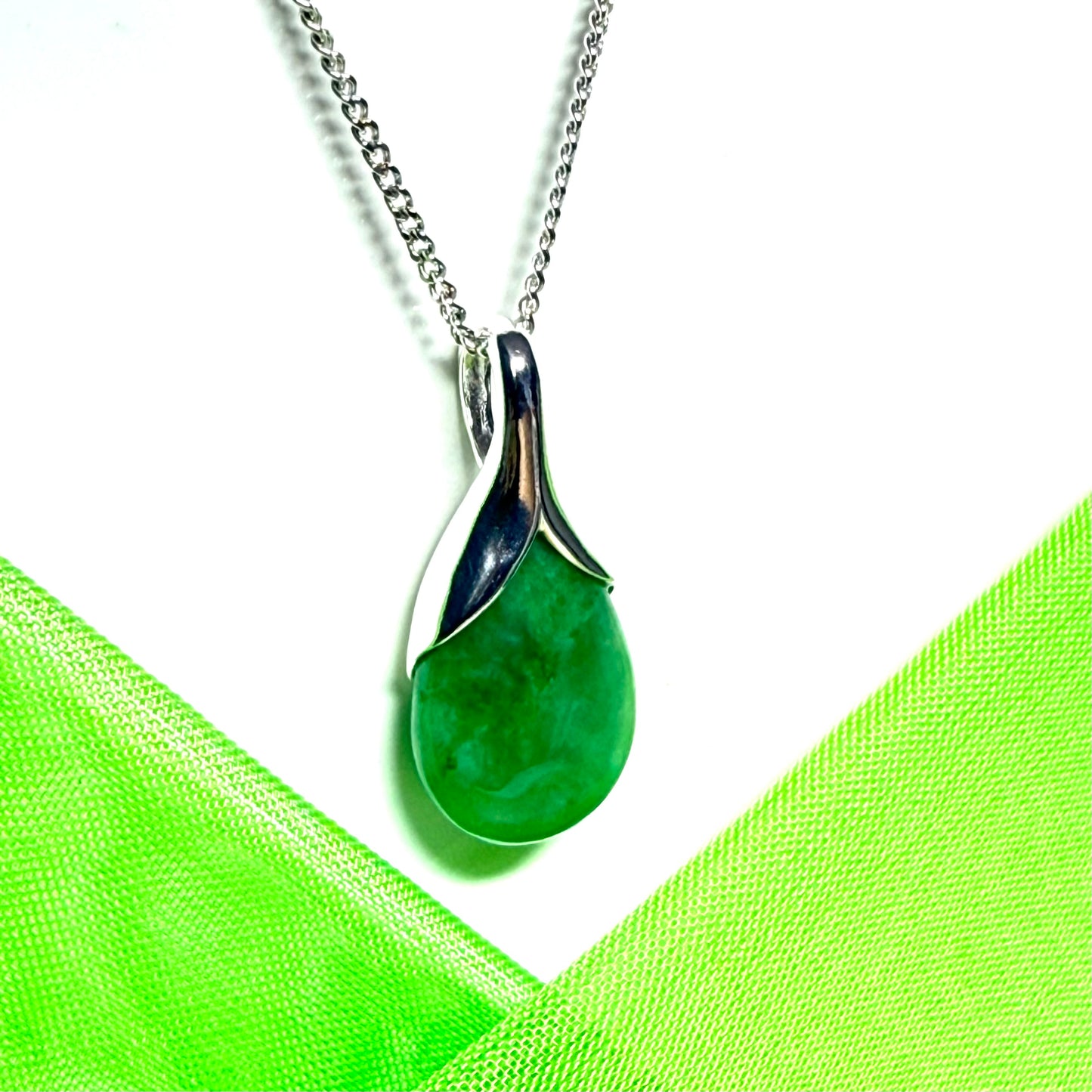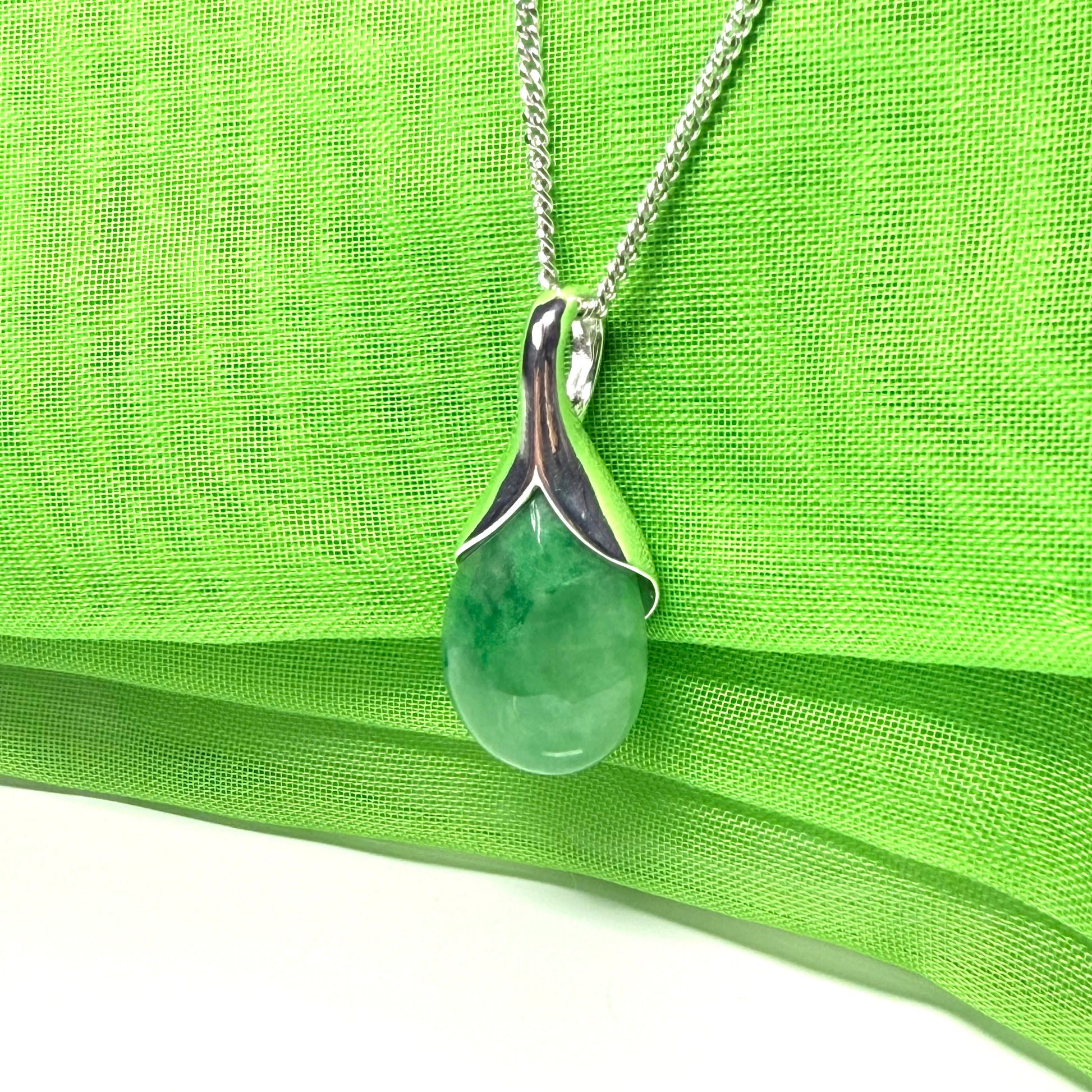 Why not embrace the allure of a real jade necklace with this stunning pear shaped sterling silver pendant necklace