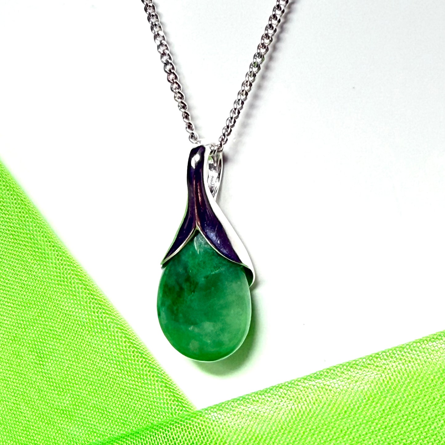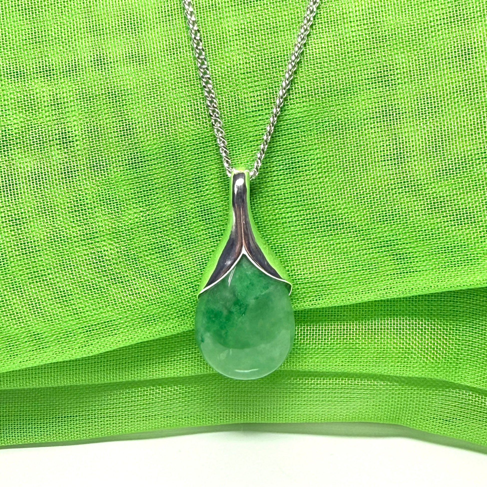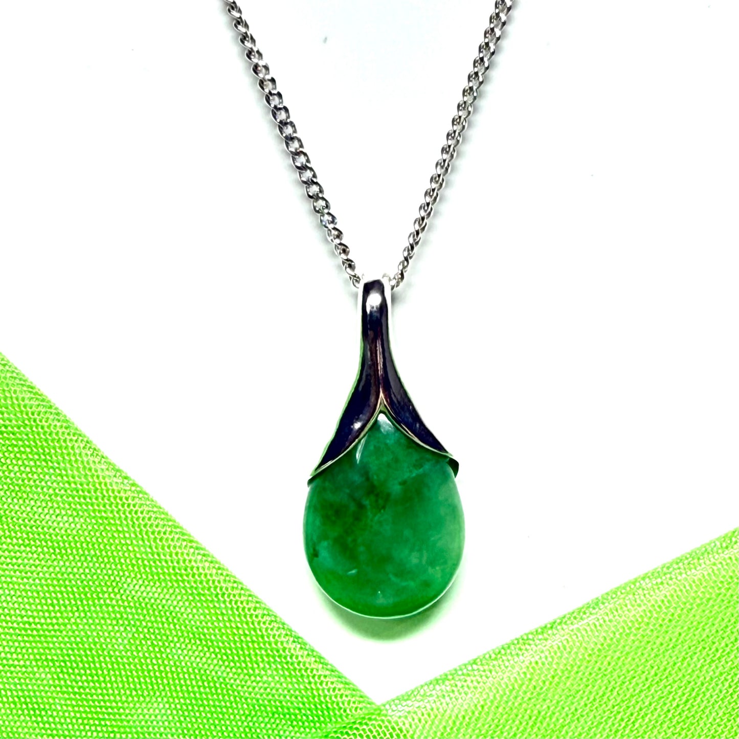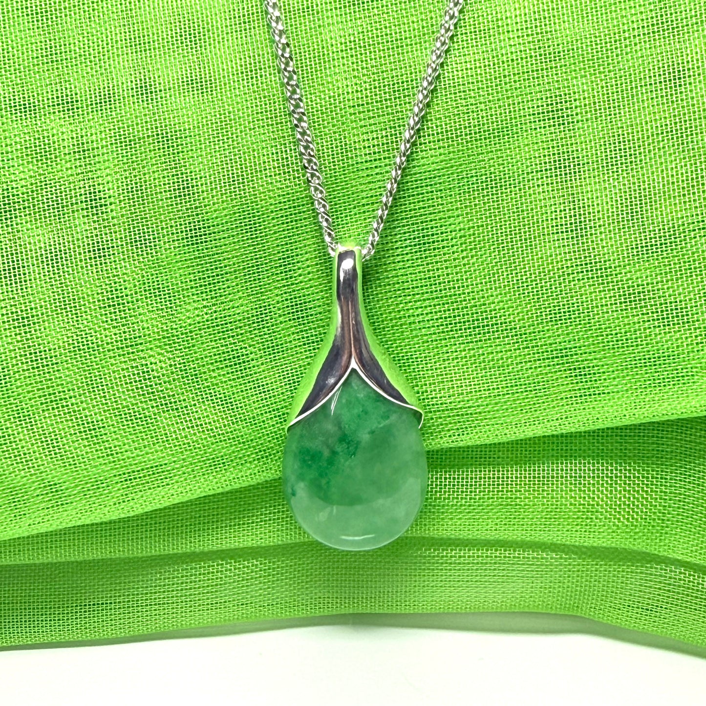 Why not embrace the allure of a real jade necklace with this stunning pear shaped sterling silver pendant necklace