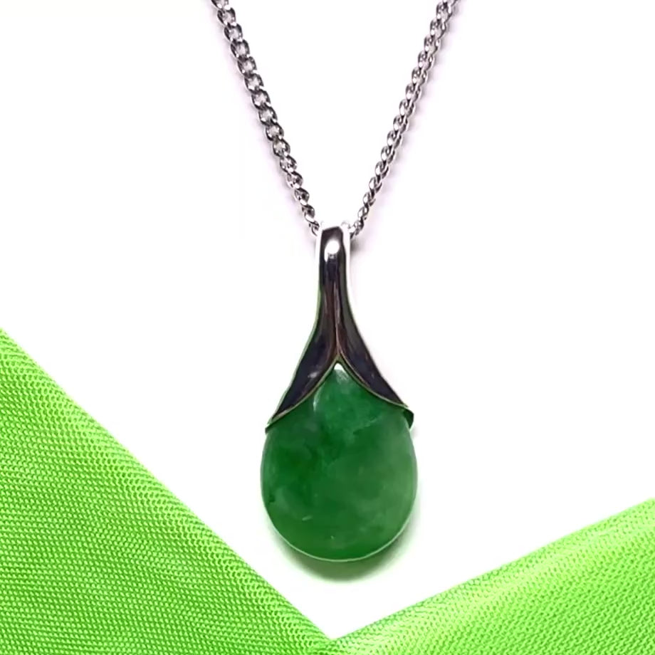 A timeless designed real green jade necklace tear drop pear shaped pendant