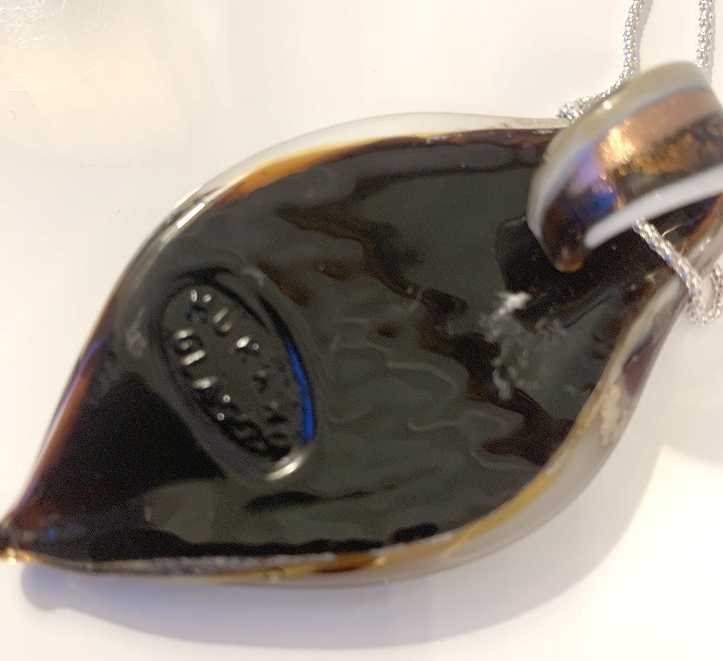 This beautiful glass pendant created by hand on the islands of Venice with the famous crystal clear Murano Glass.
