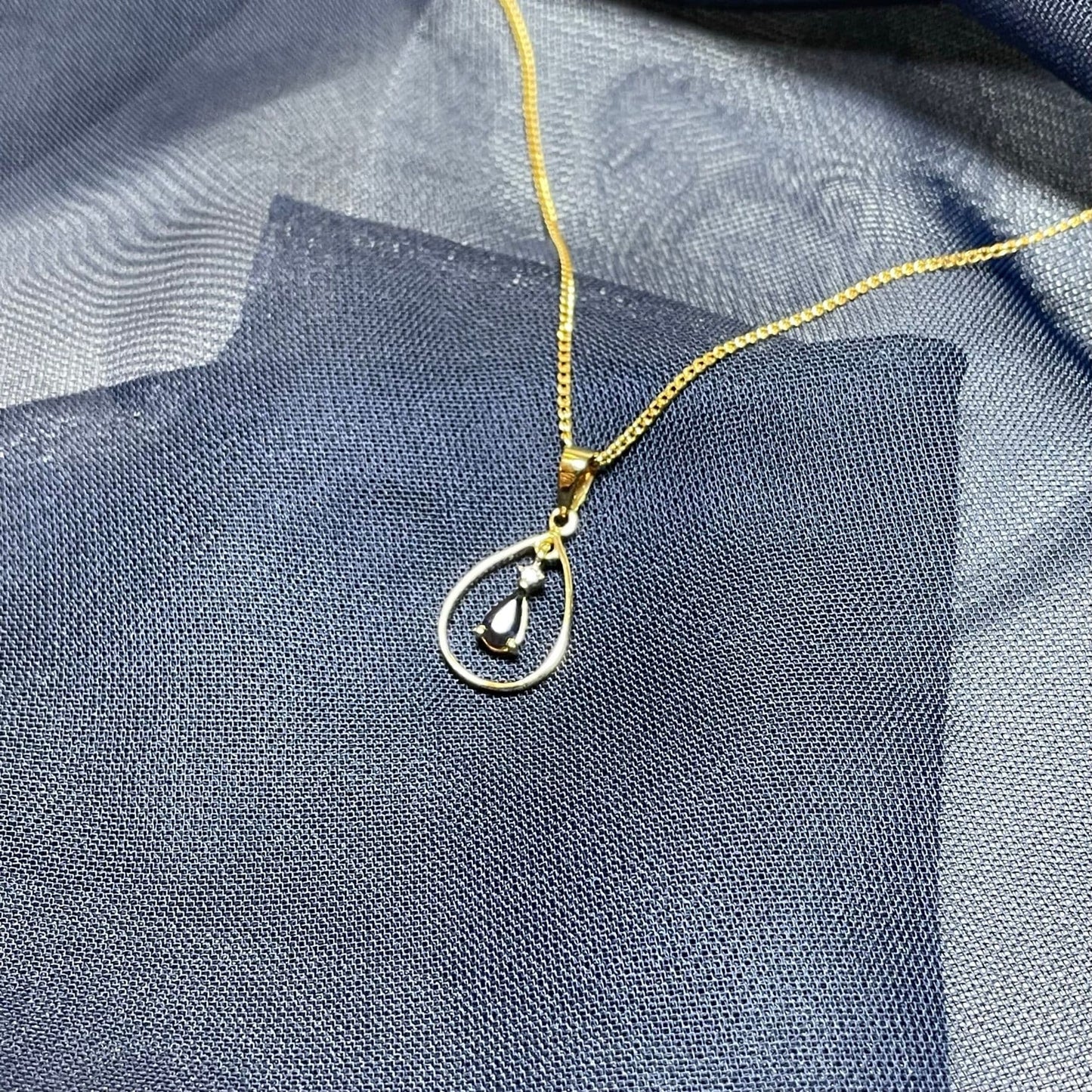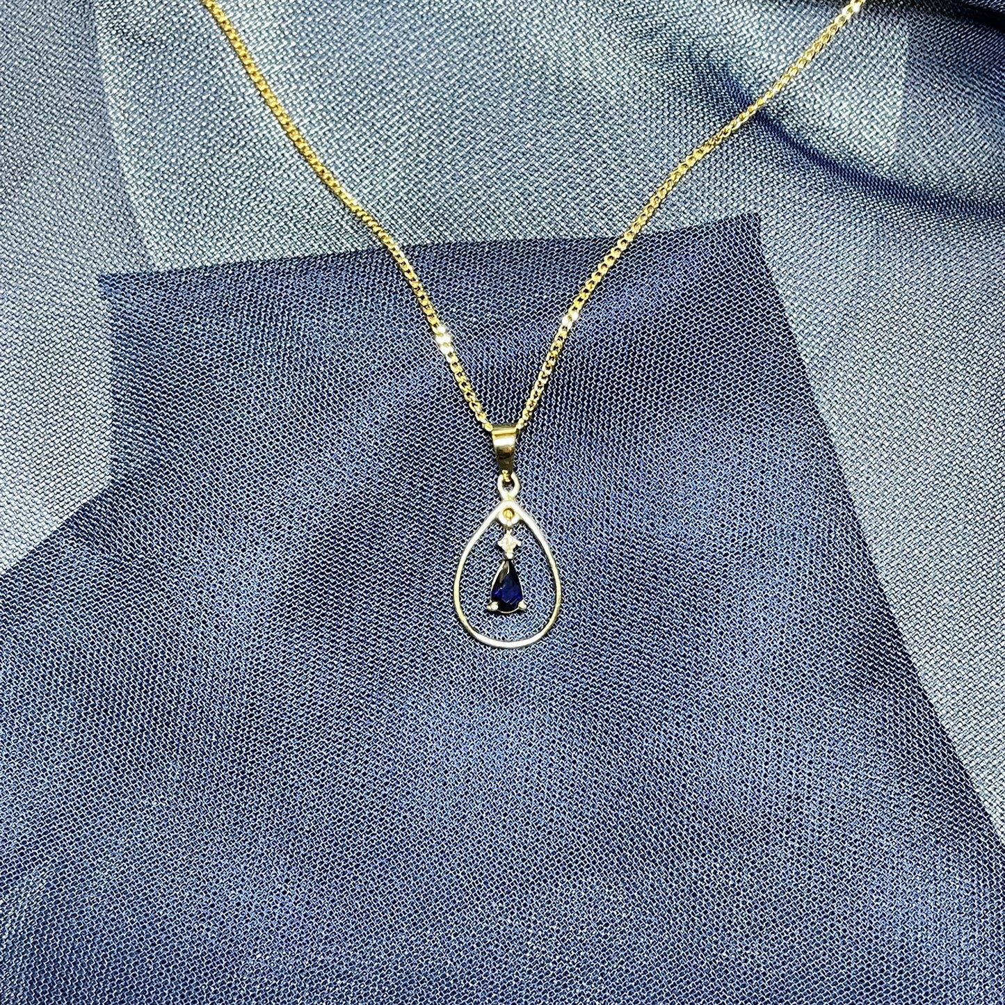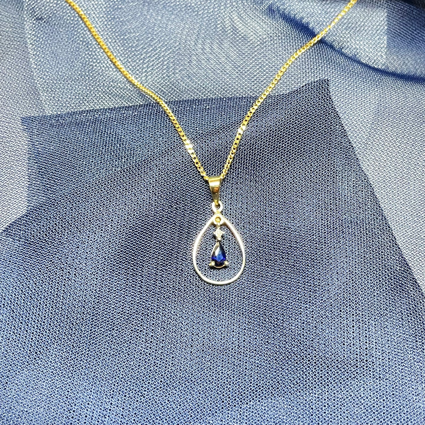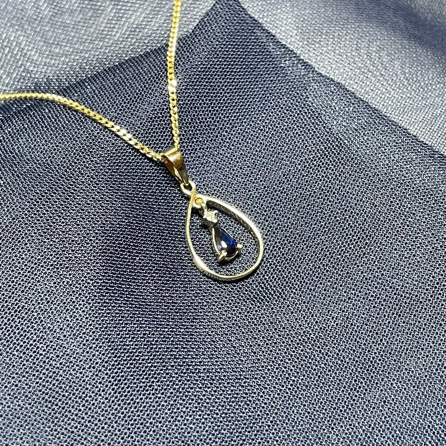 Blue Sapphire And Diamond Yellow Gold Open Pear Teardrop Necklace