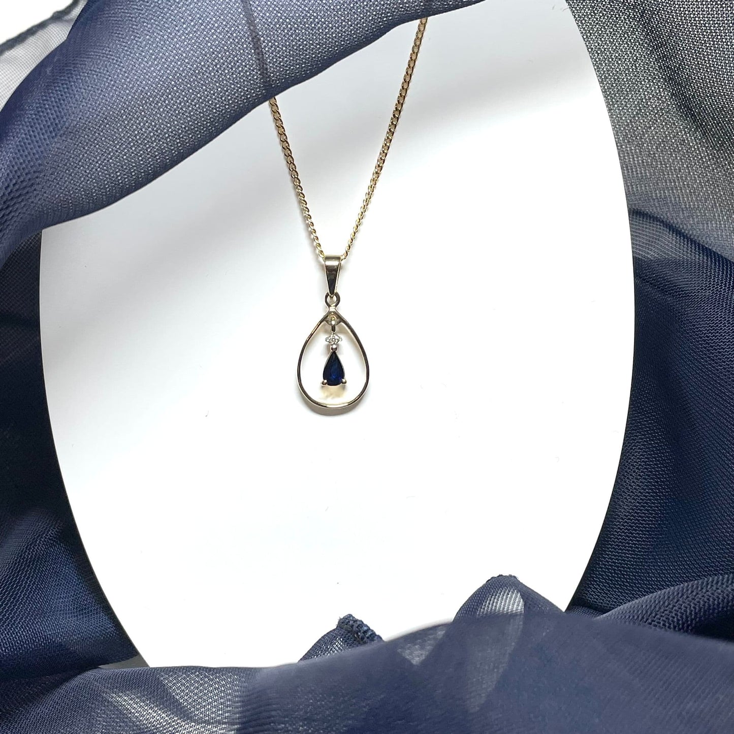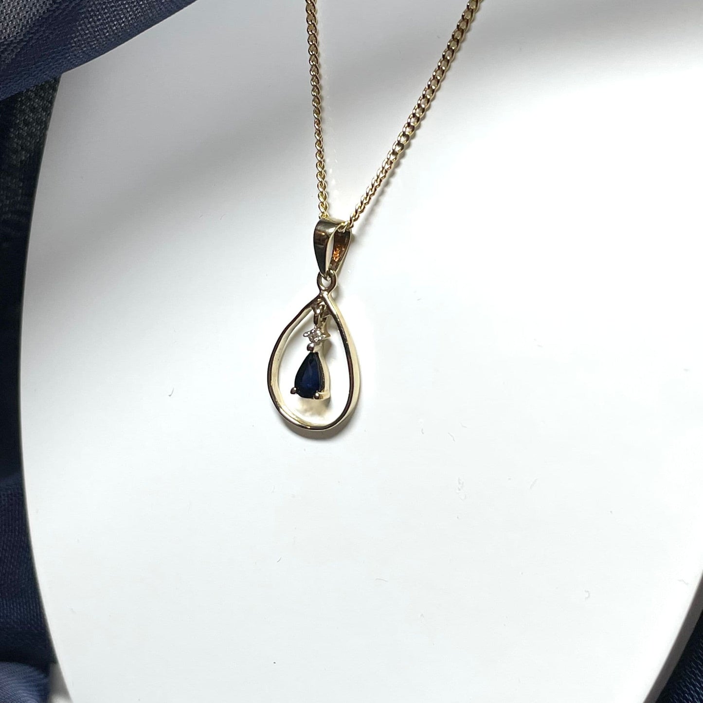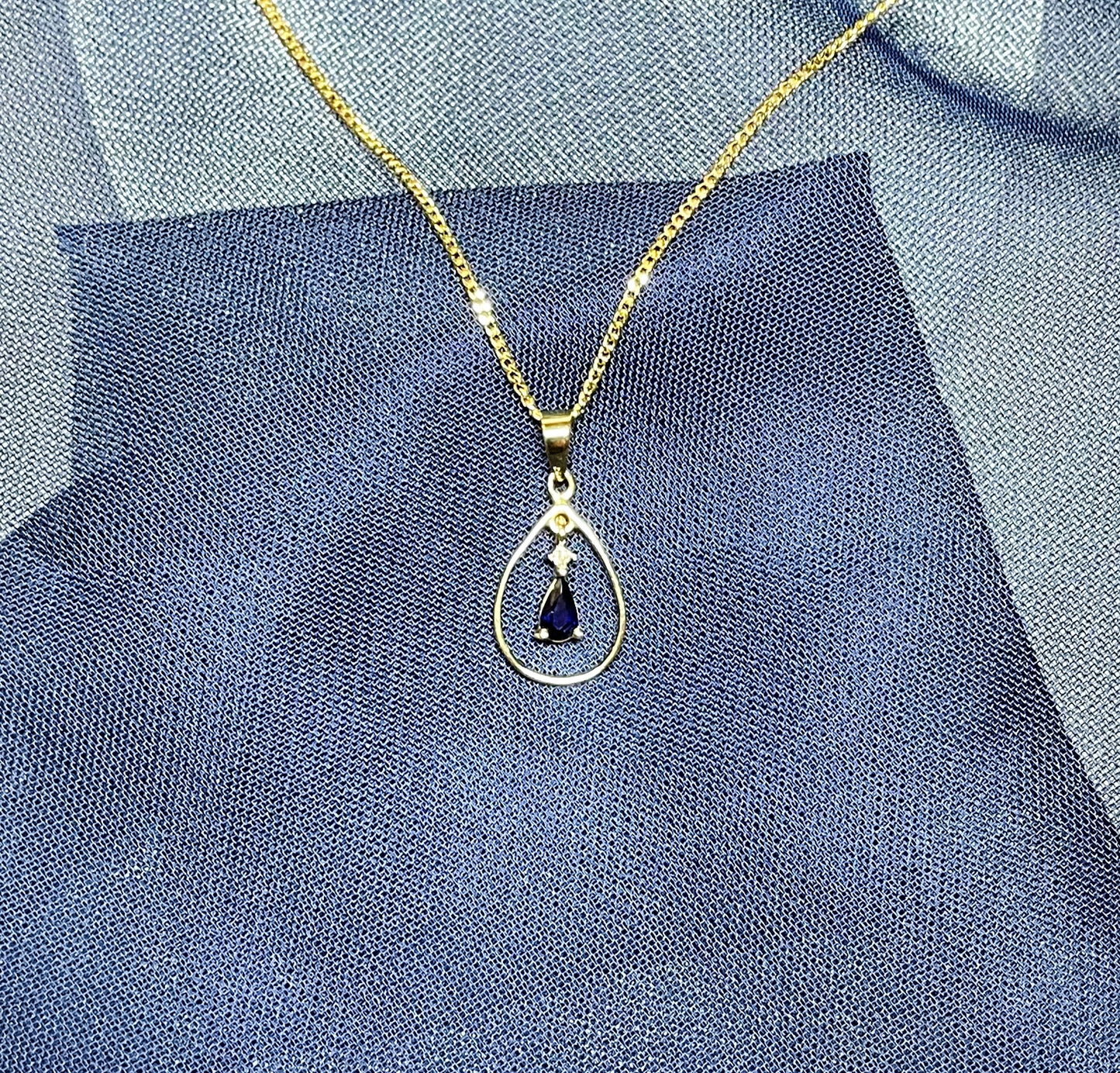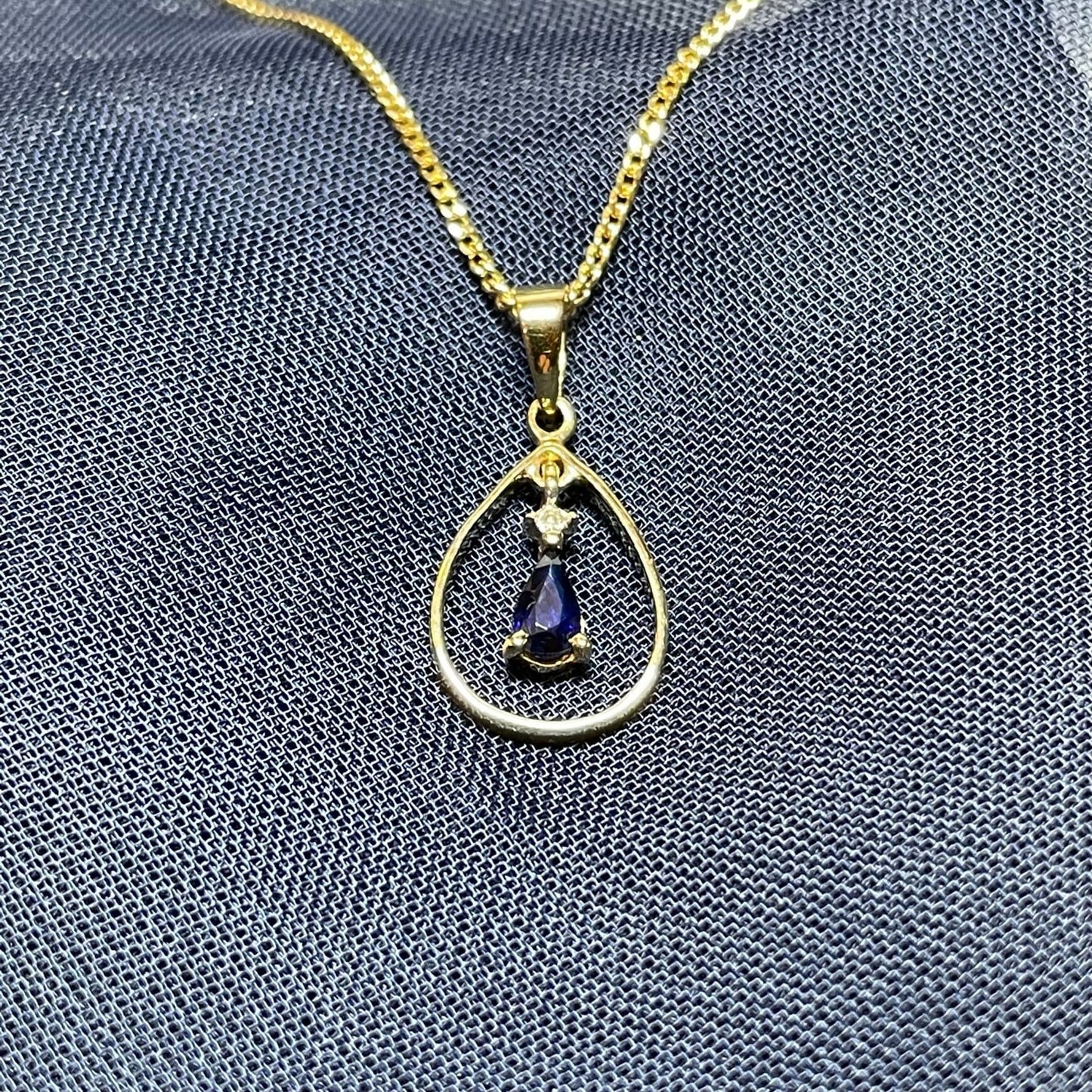 Blue Sapphire And Diamond Yellow Gold Open Pear Teardrop Necklace