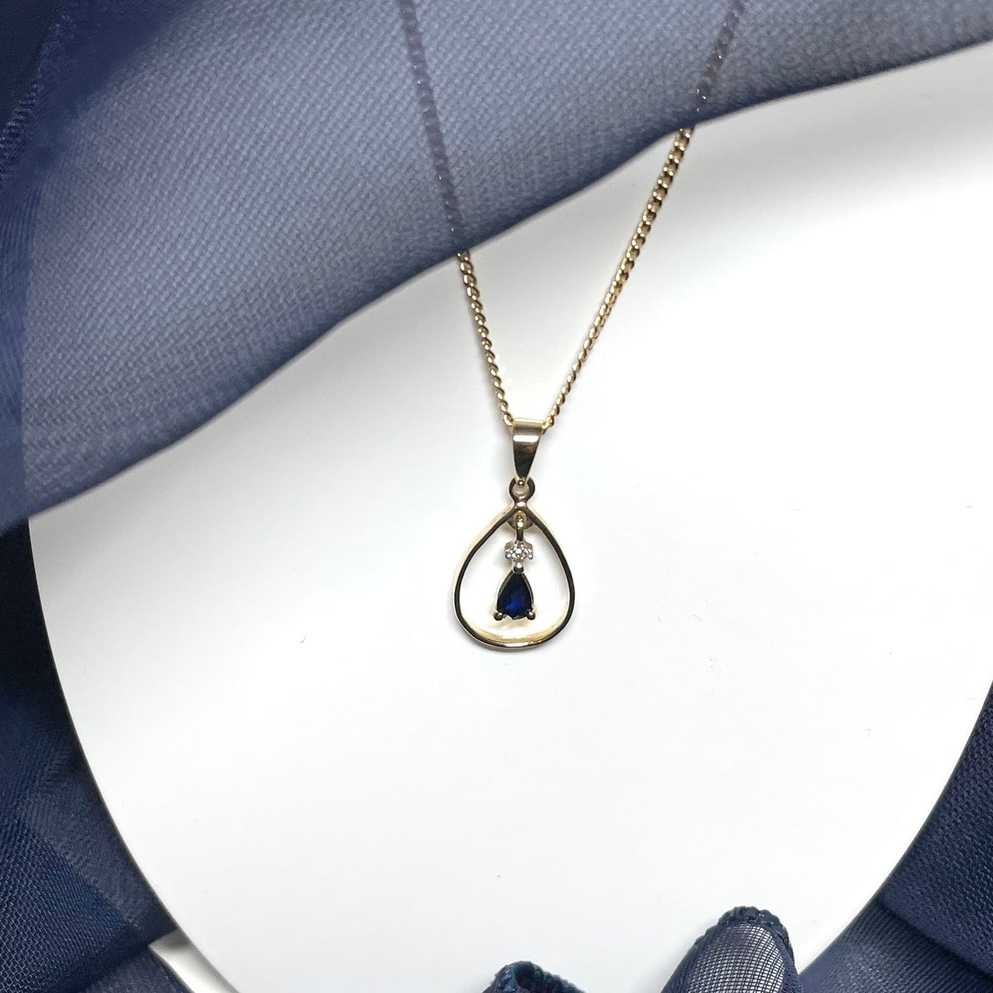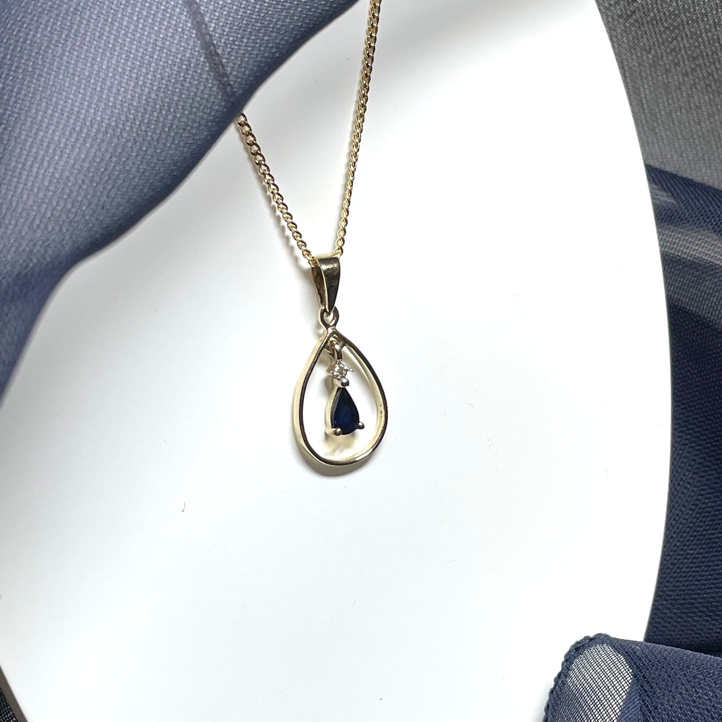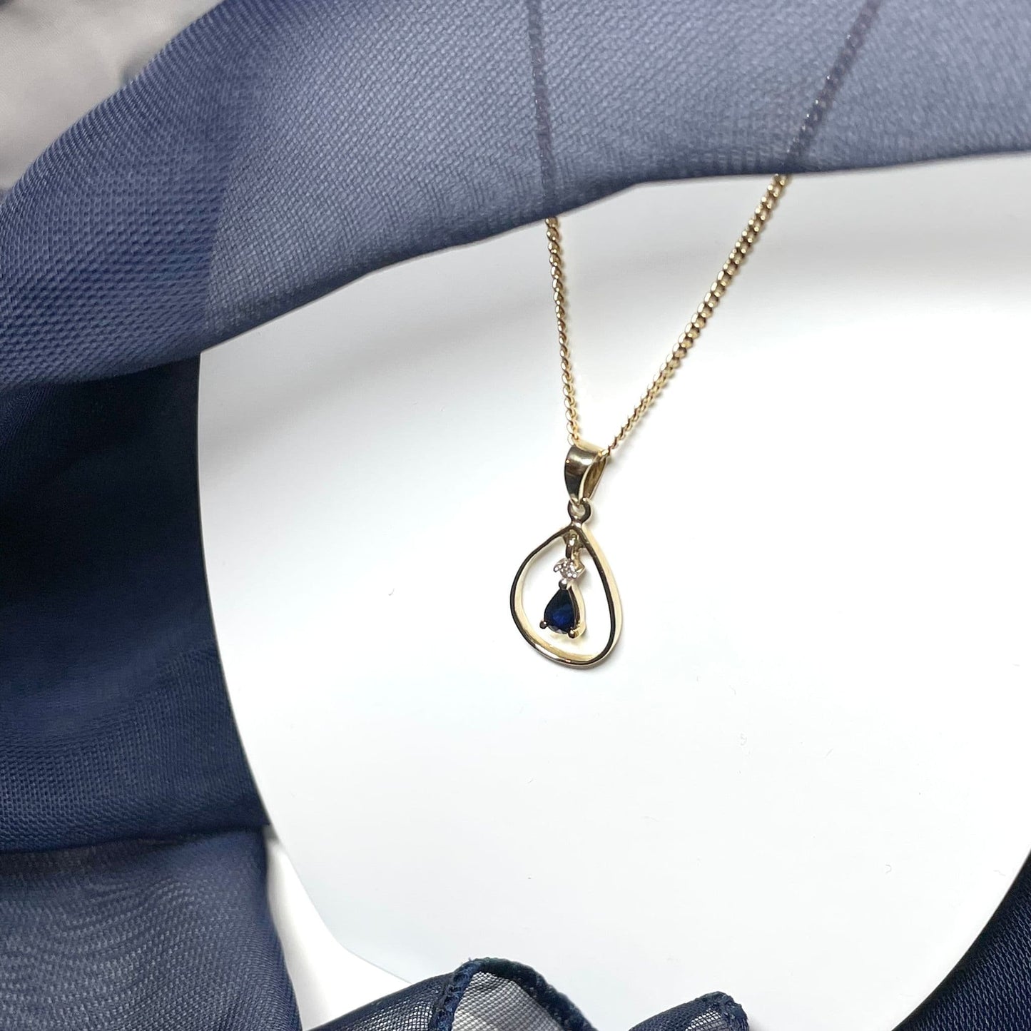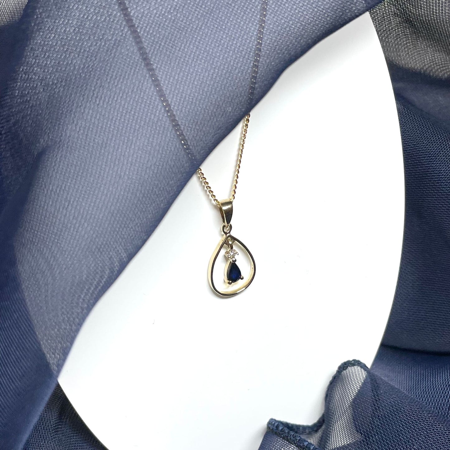 Blue Sapphire And Diamond Yellow Gold Open Pear Teardrop Necklace