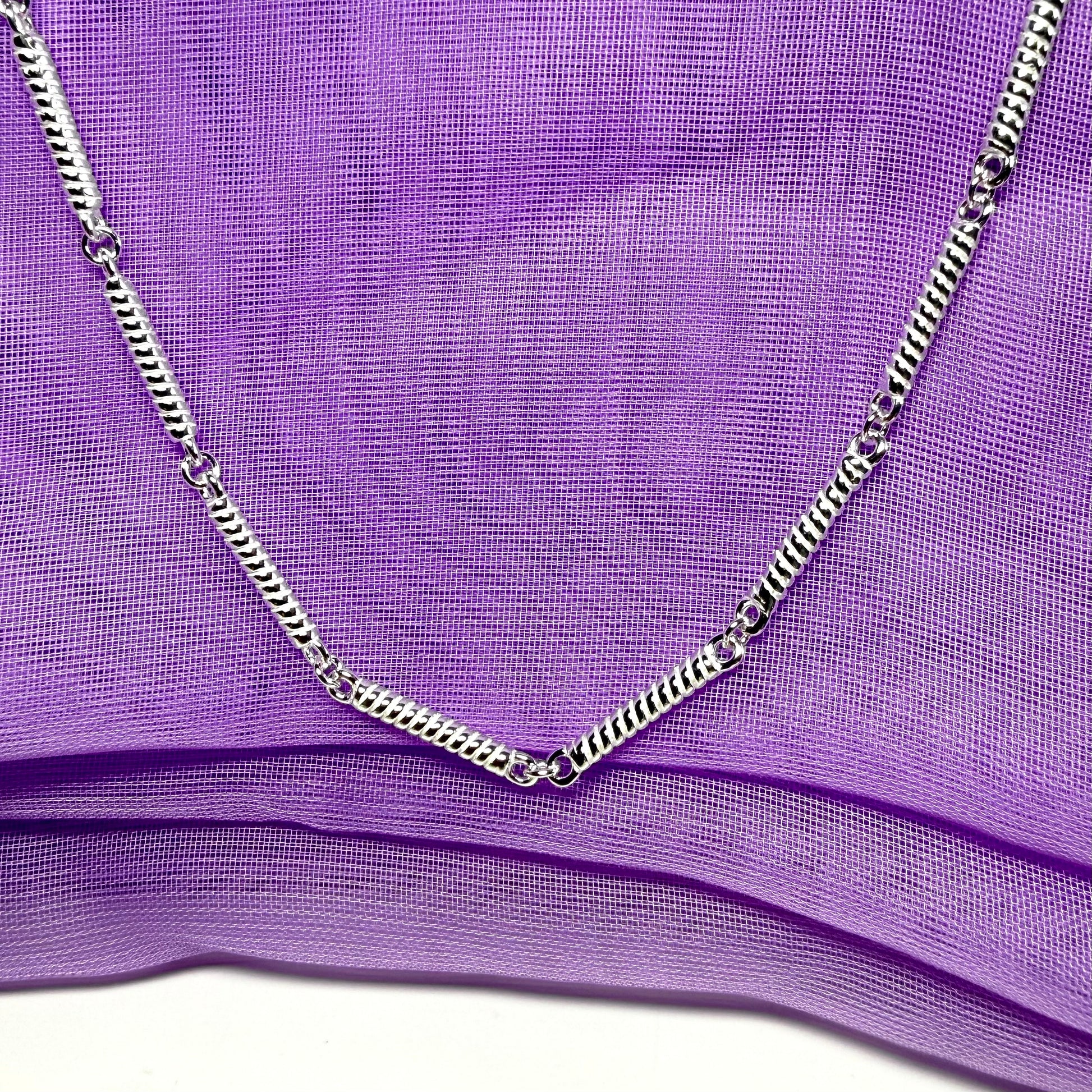Ladies sterling silver long scrolled twisted patterned necklace solid links
