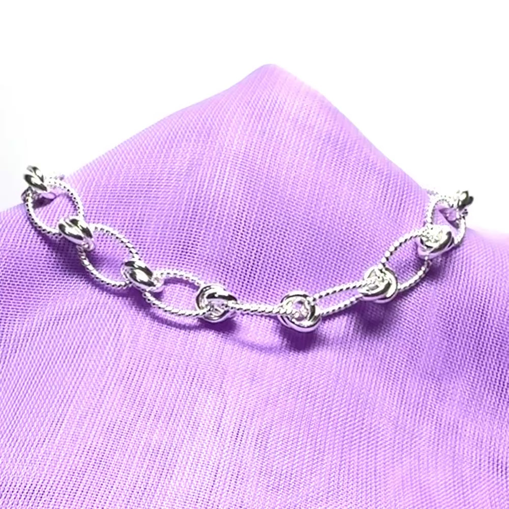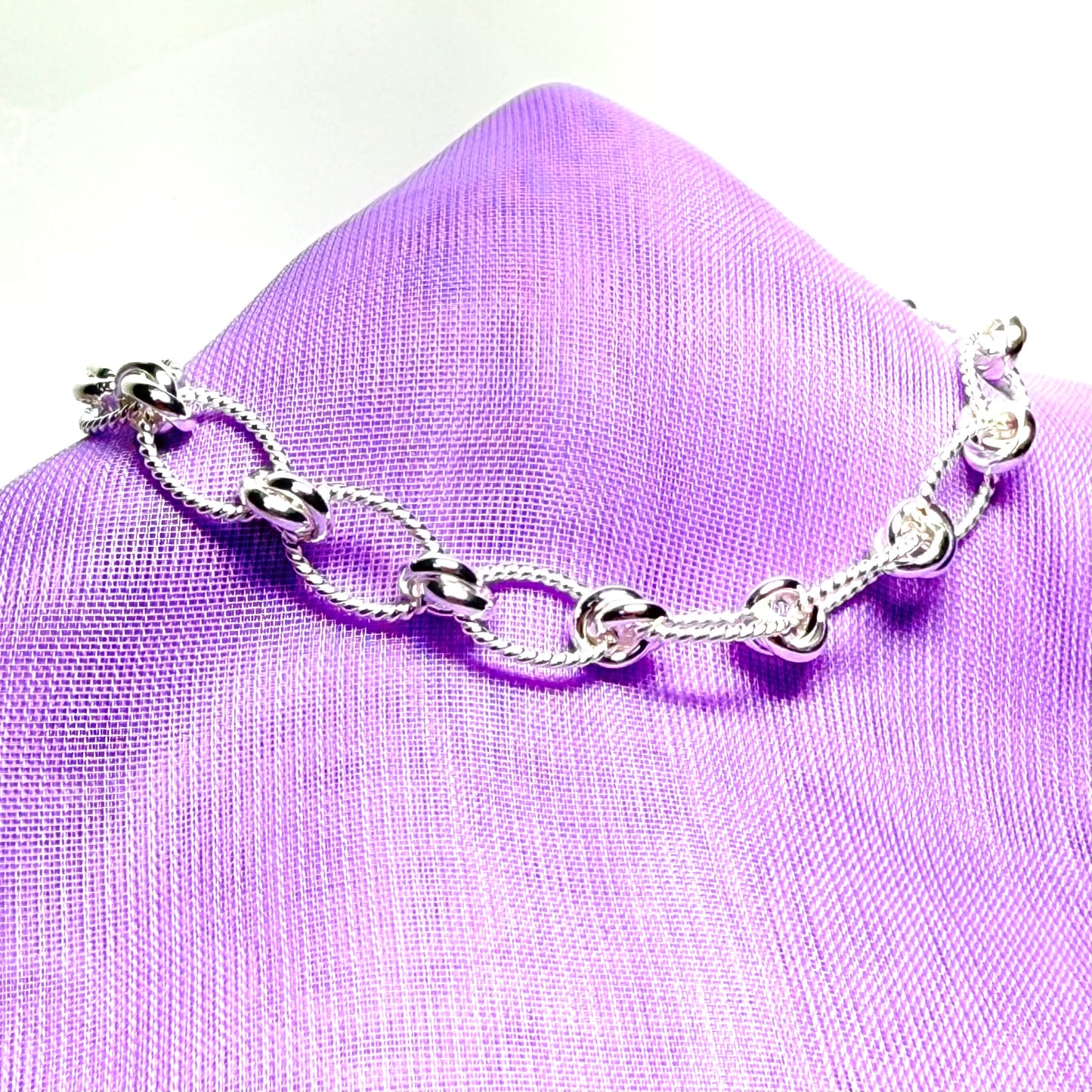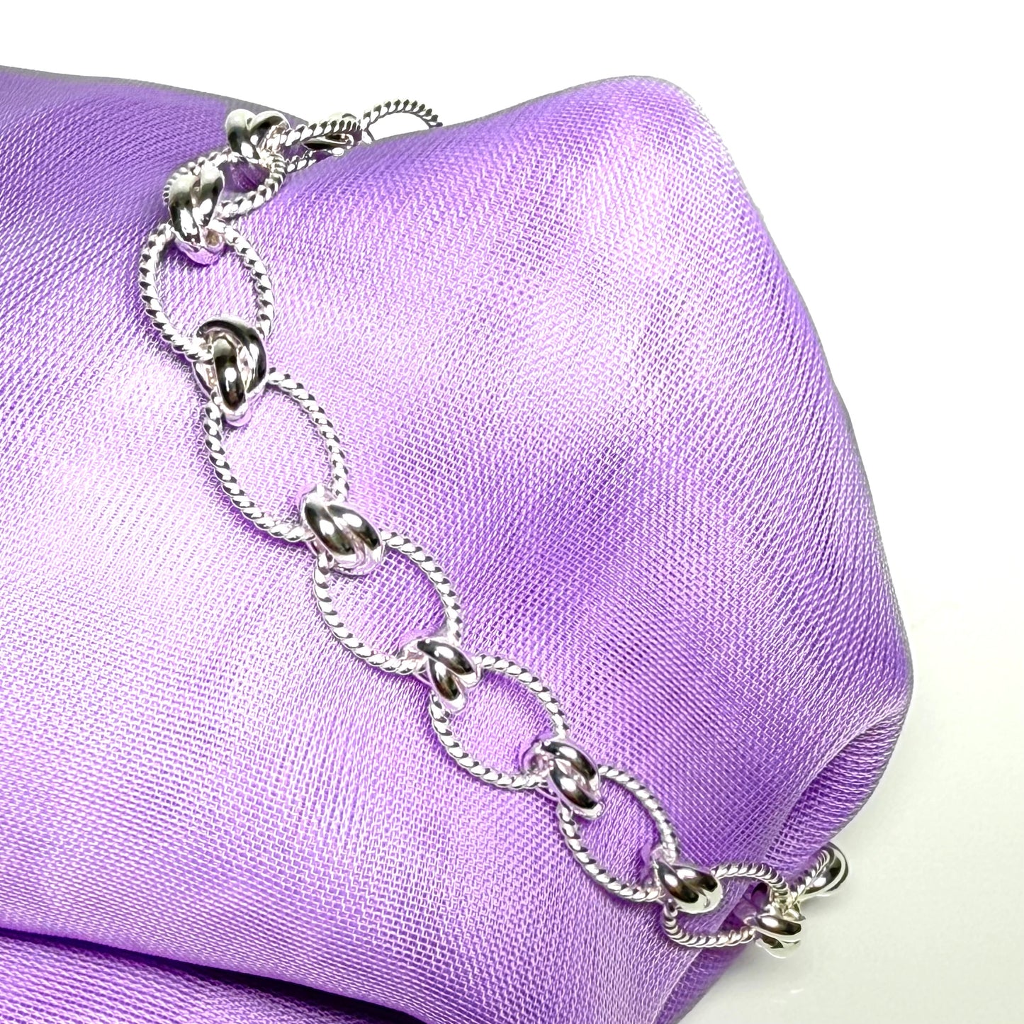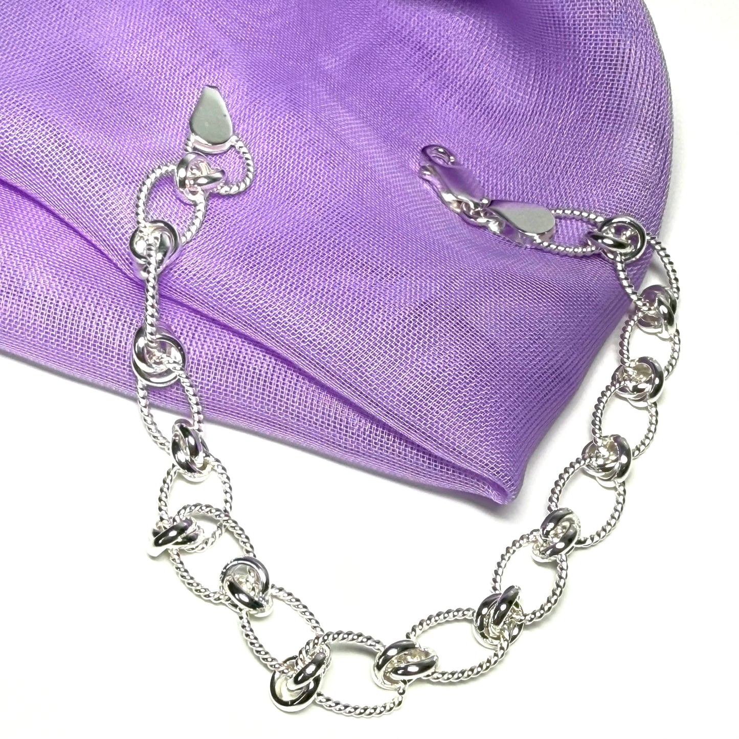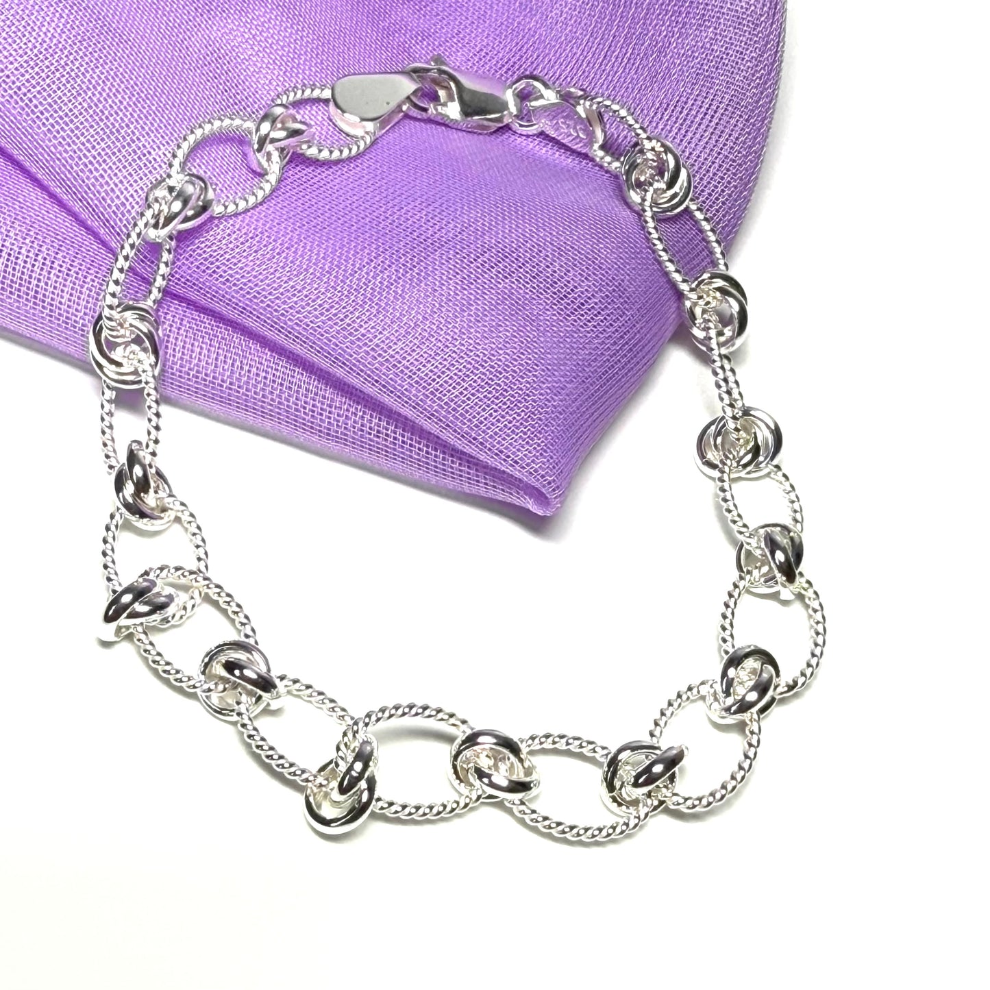 Ladies sterling silver oval rope patterned knotted bracelet solid link