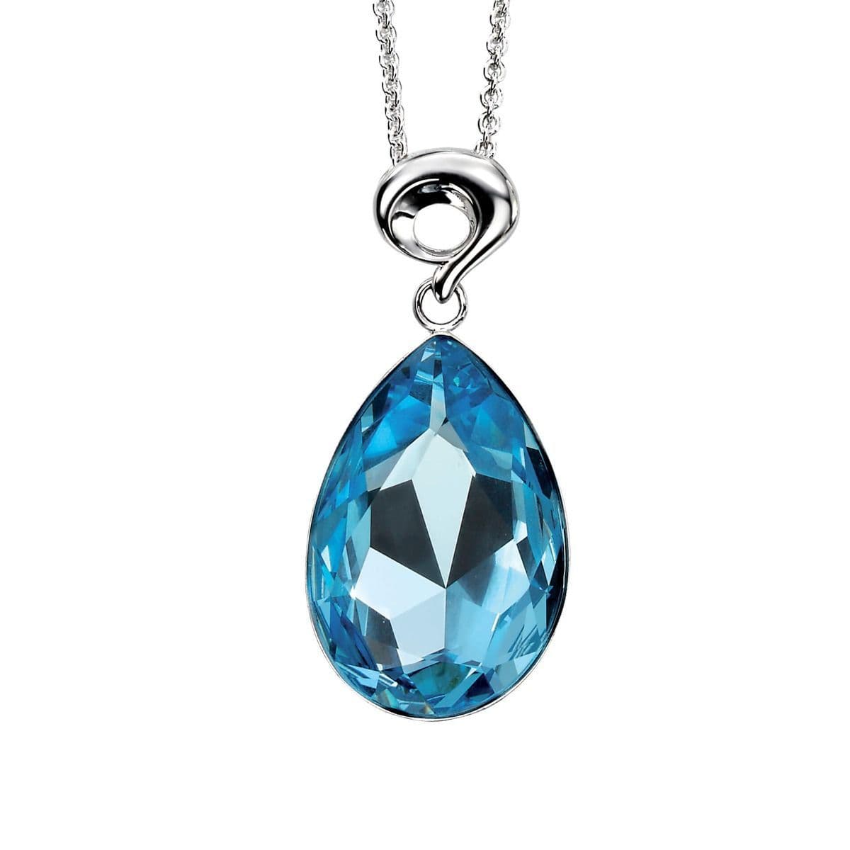 A beautiful large blue crystal teardrop or pear shaped necklace, with a smooth rubbed over setting, including a solid sterling silver chain