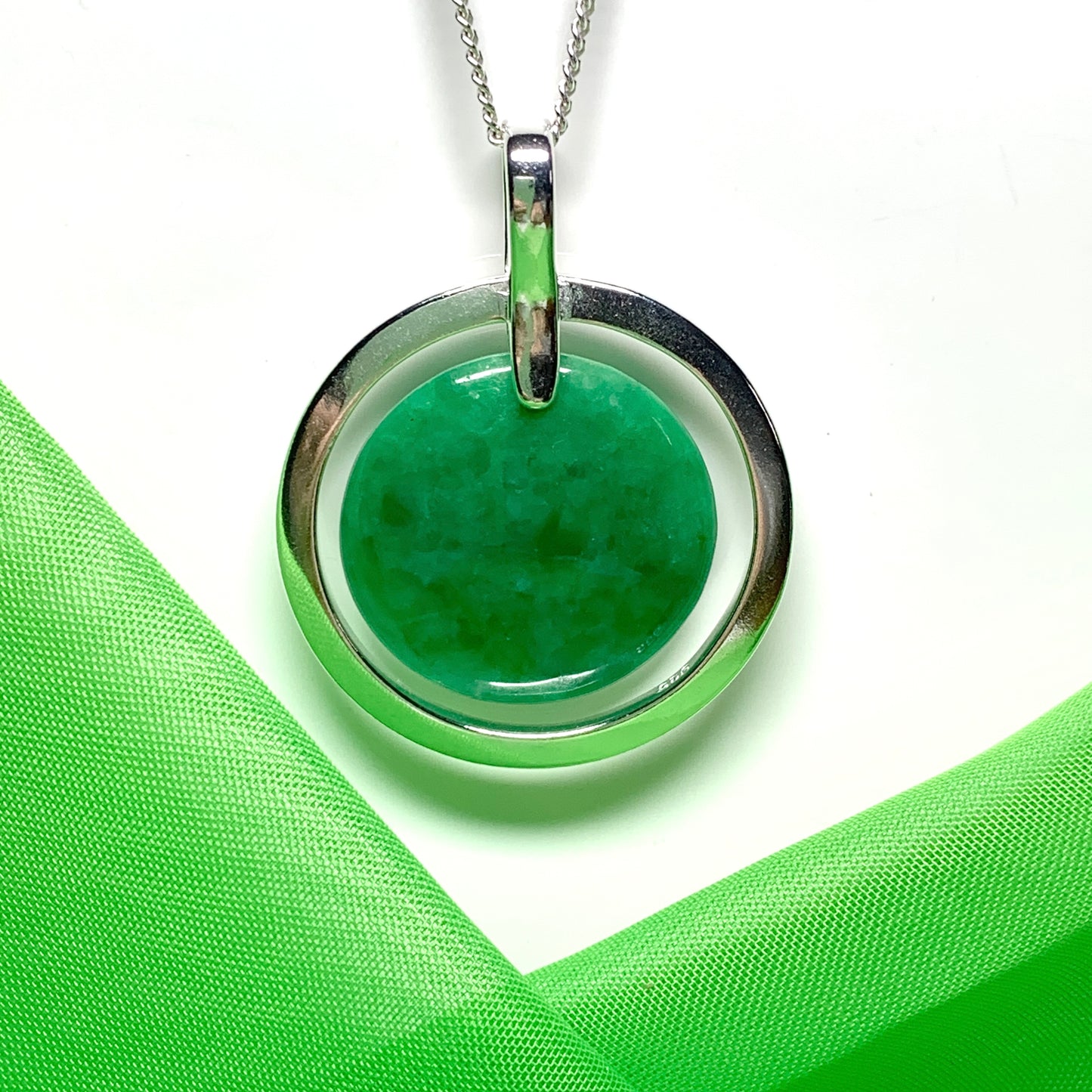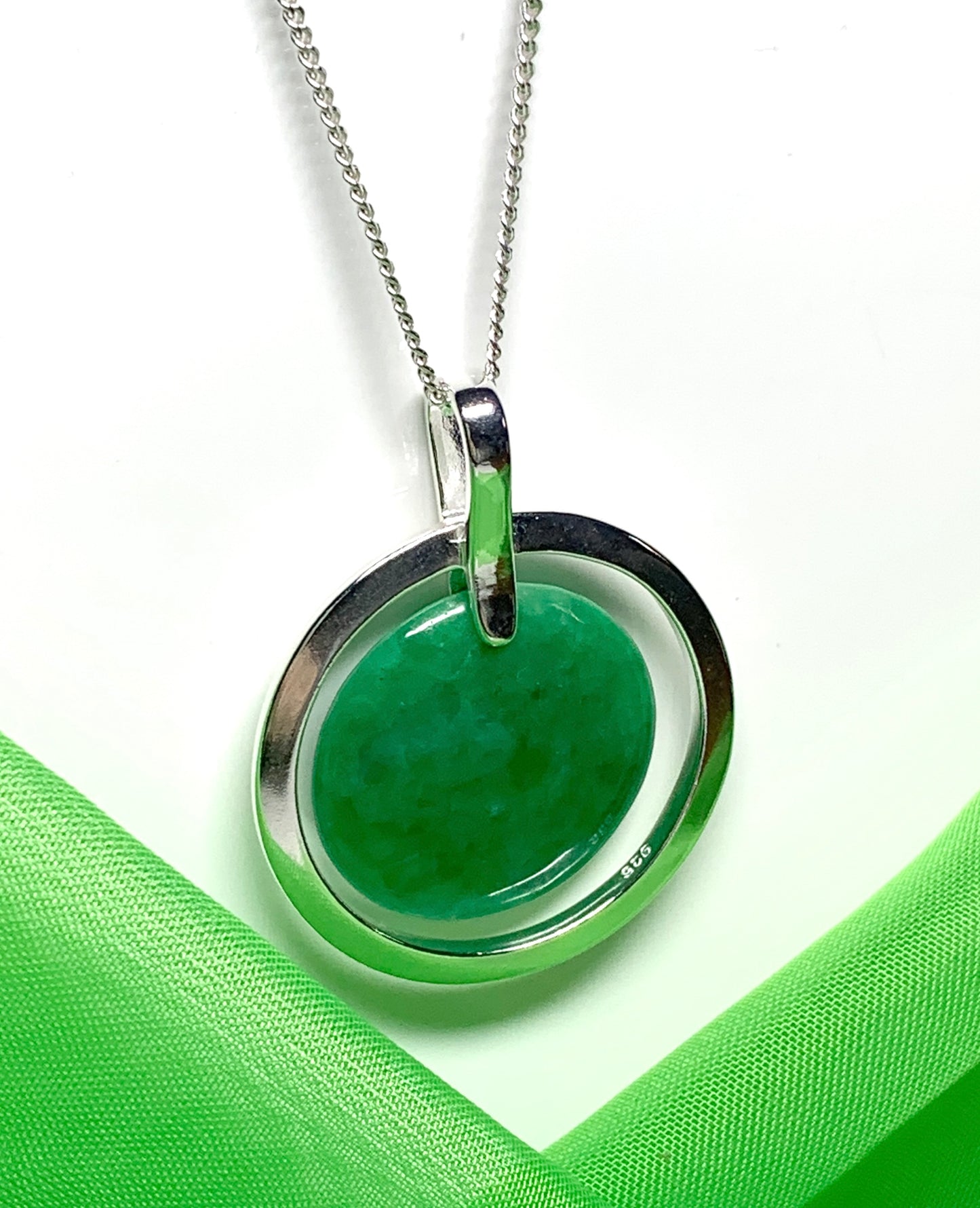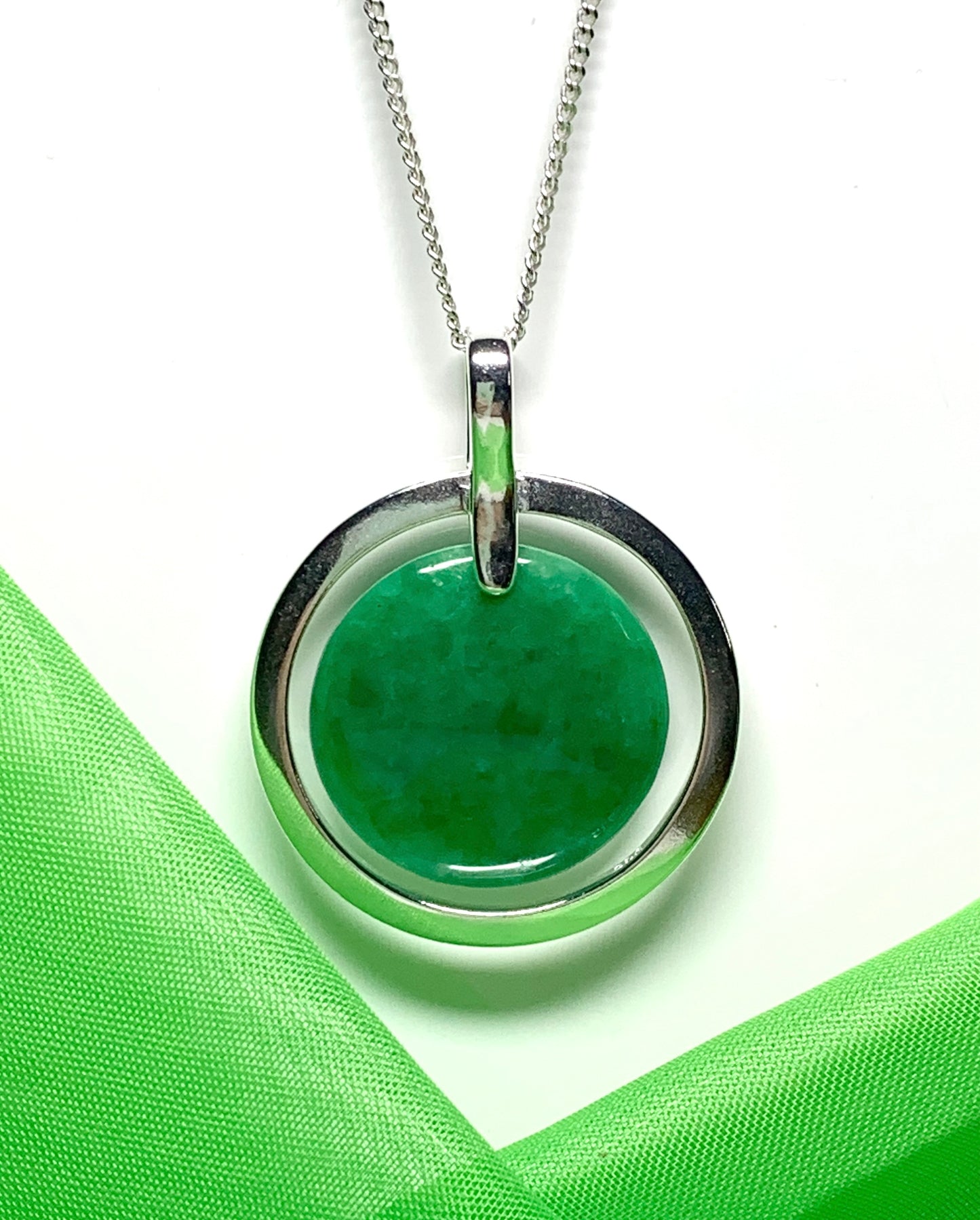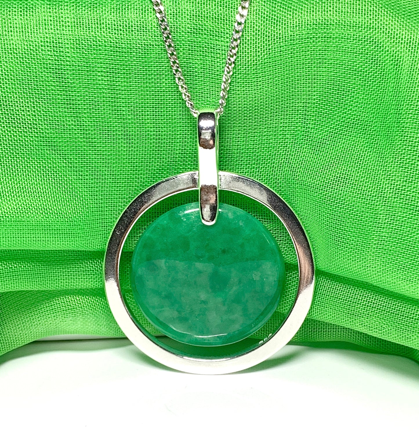 Made in solid 925 sterling silver that will shine and sparkle in the light as it reflects from the green jade stone, giving a stunning green hue colour on the neck