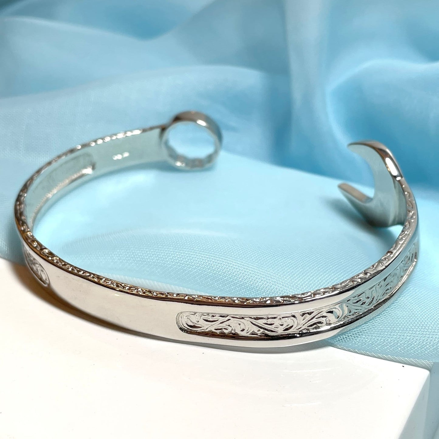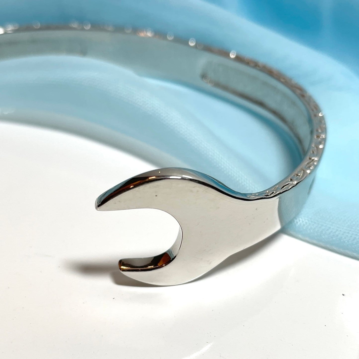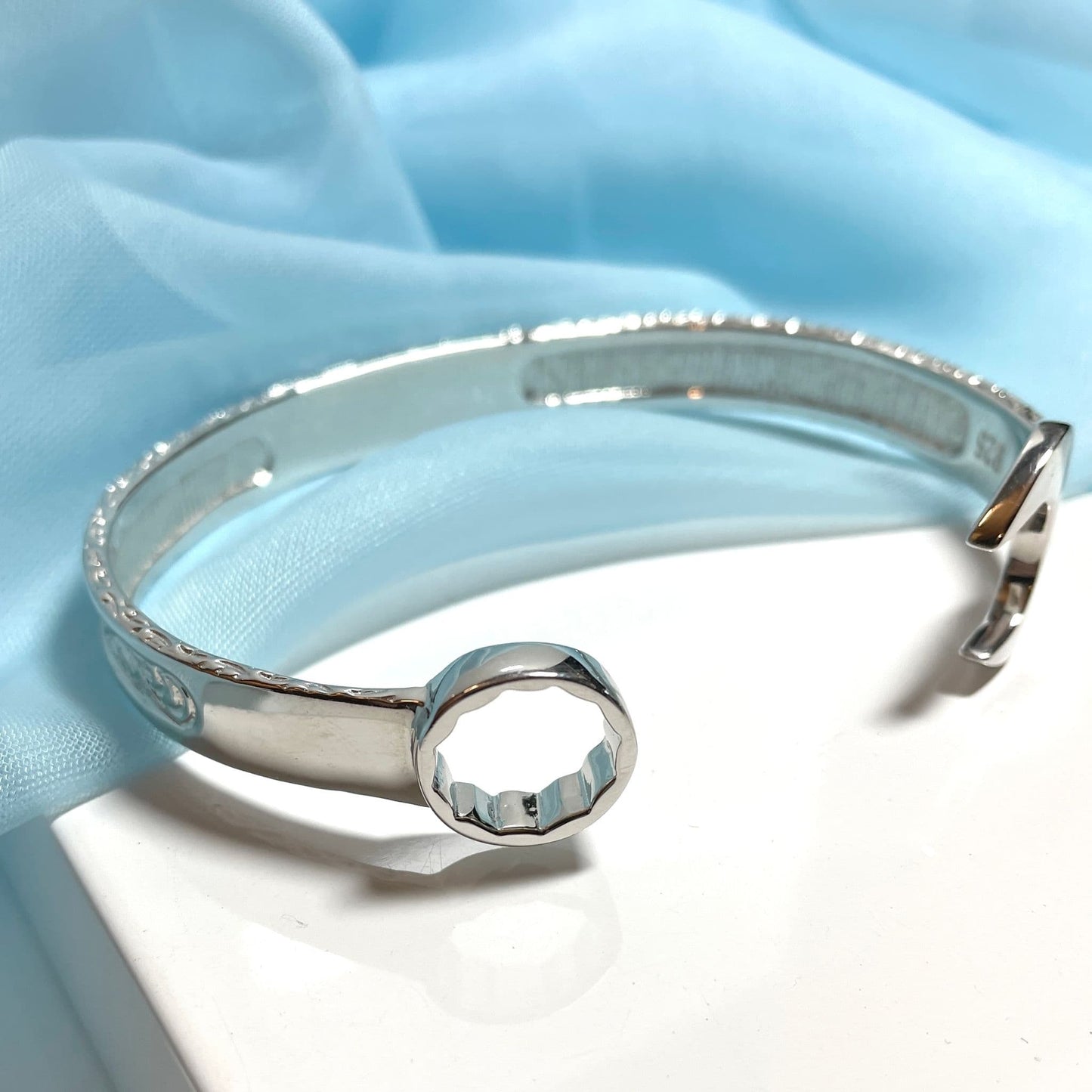 A heavy men's stunning classic mechanics spanner designed heavy gauge torque bangle for your man, that can be given as a perfect gift for your gent for an anniversary present, a birthday present or even a treat for yourself, coming complete with a lovely presentation box and with free delivery to the UK