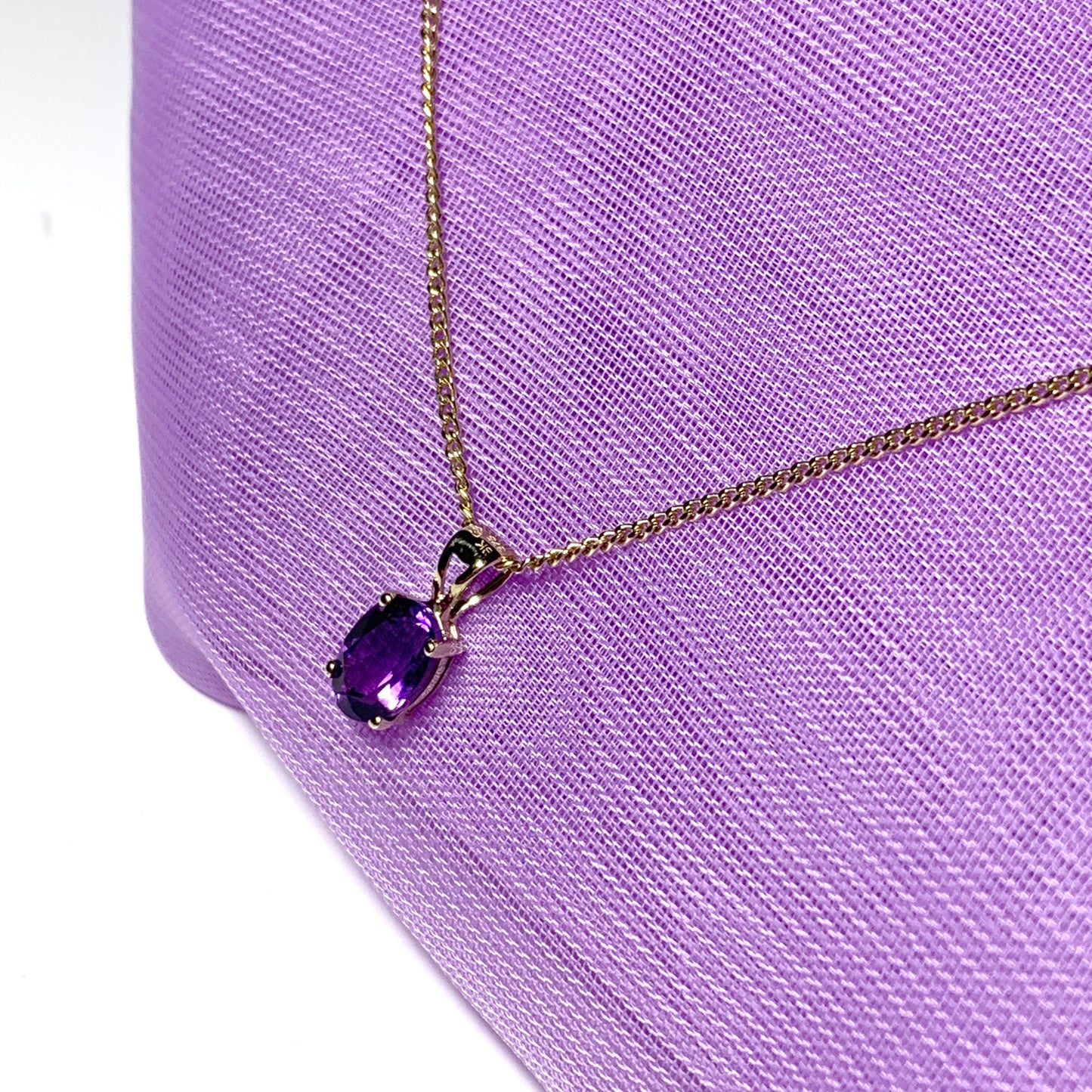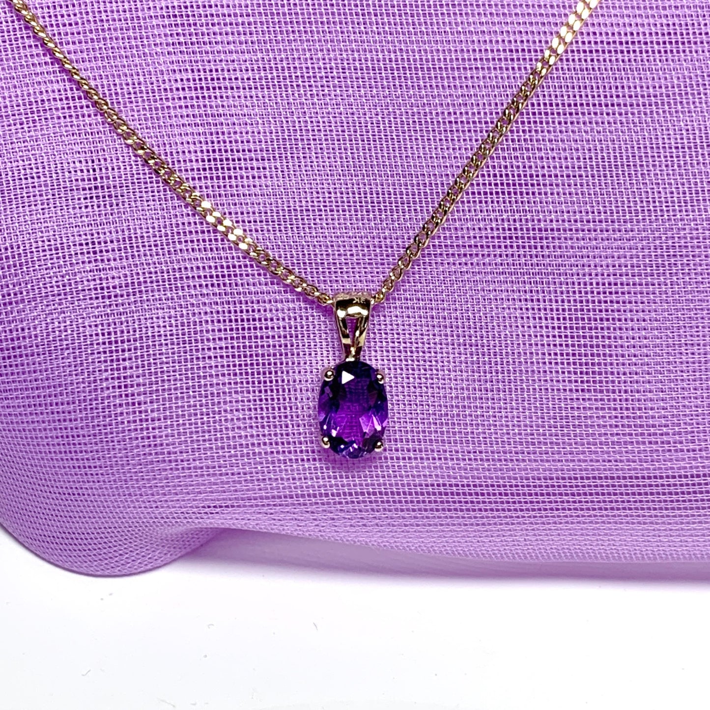 Oval purple amethyst yellow gold necklace