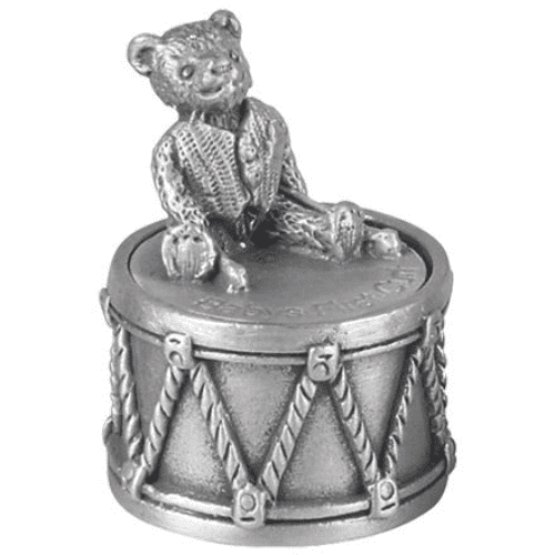 Pewter Teddy Drummer First Curl Box Christening Gift