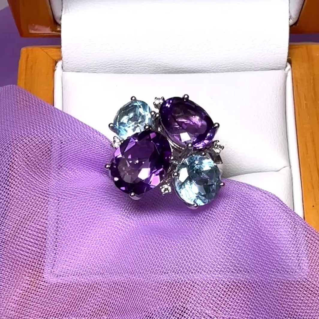 Real blue topaz and real amethyst dress cocktail fancy cluster ring