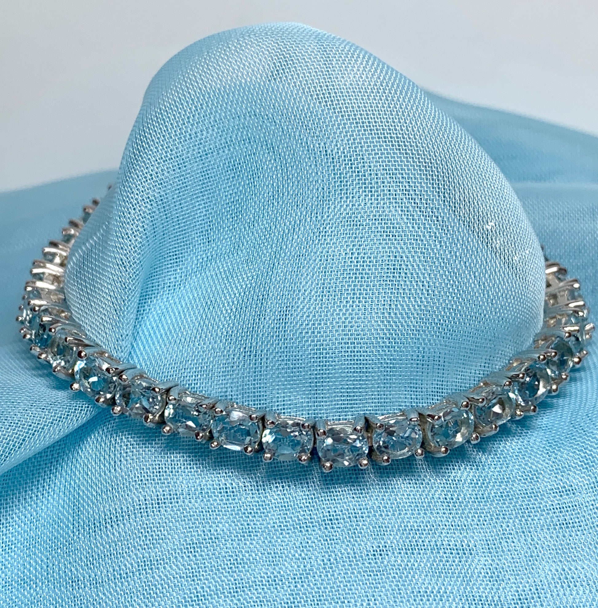 These beautiful light blue coloured gem stones are stunning in this classic claw set bracelet