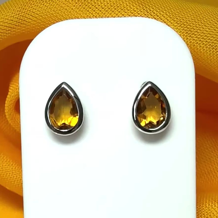 Teardrop shaped real citrine earrings set into 9 white gold mounts