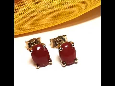 Real coral oval shaped stud earrings yellow gold within a simple four claw setting