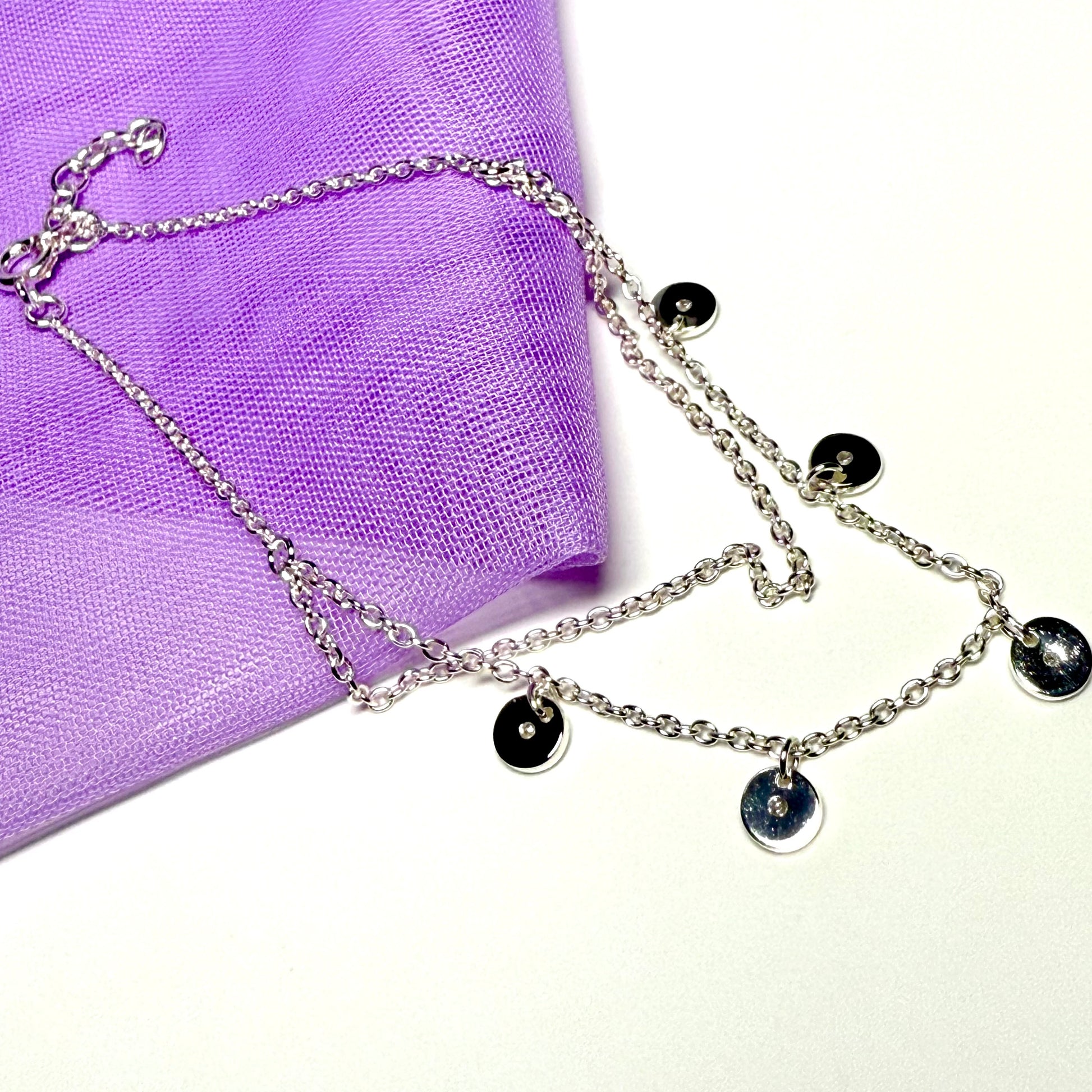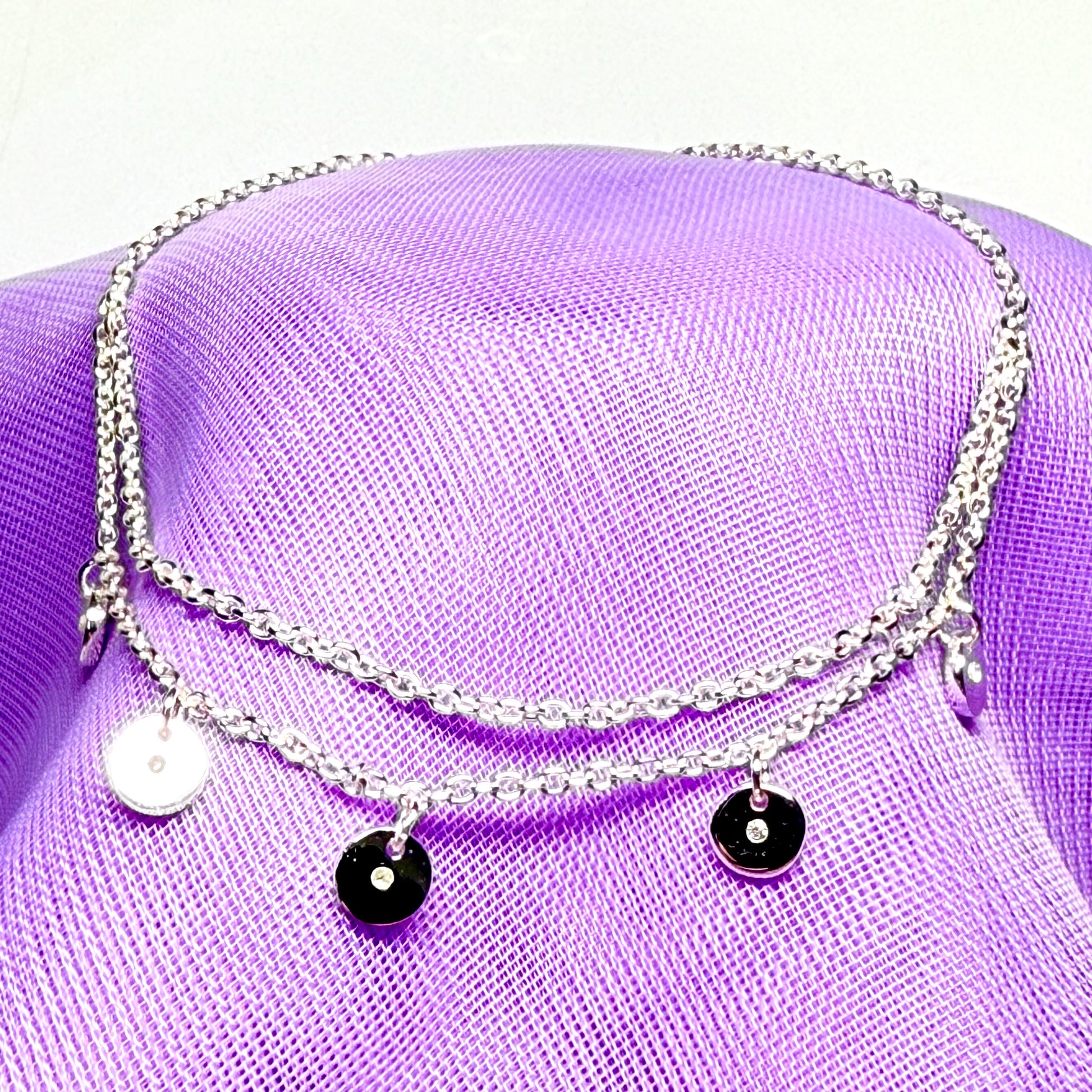 Real diamond ladies bracelet small round disc shaped charm sparkling sterling silver