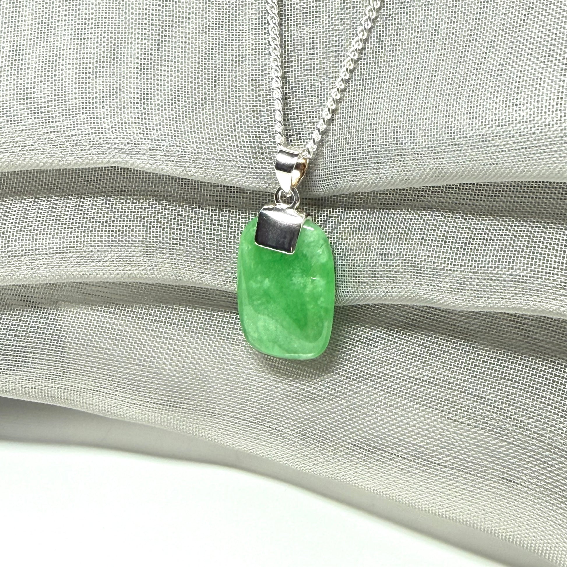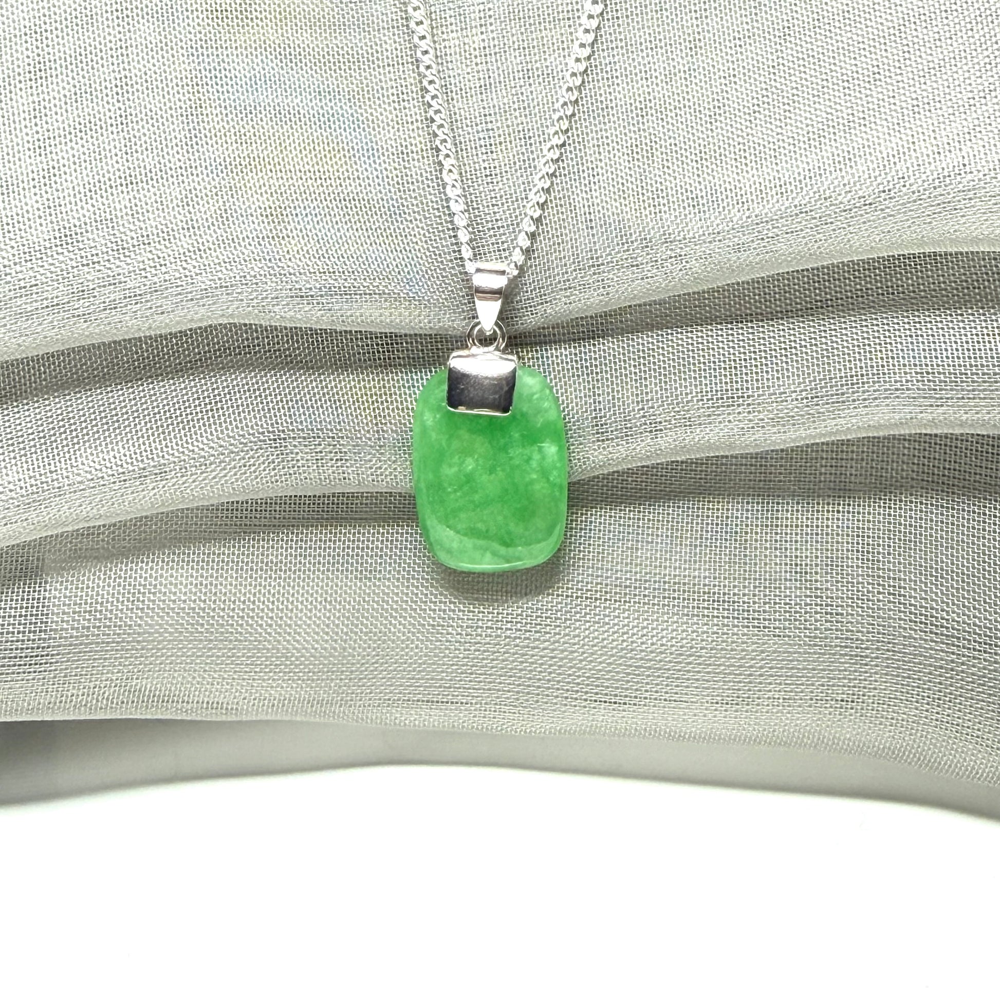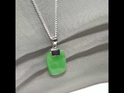 Why not add a touch of elegance to your outfit with this stunning cushion shaped silver real green jade necklace