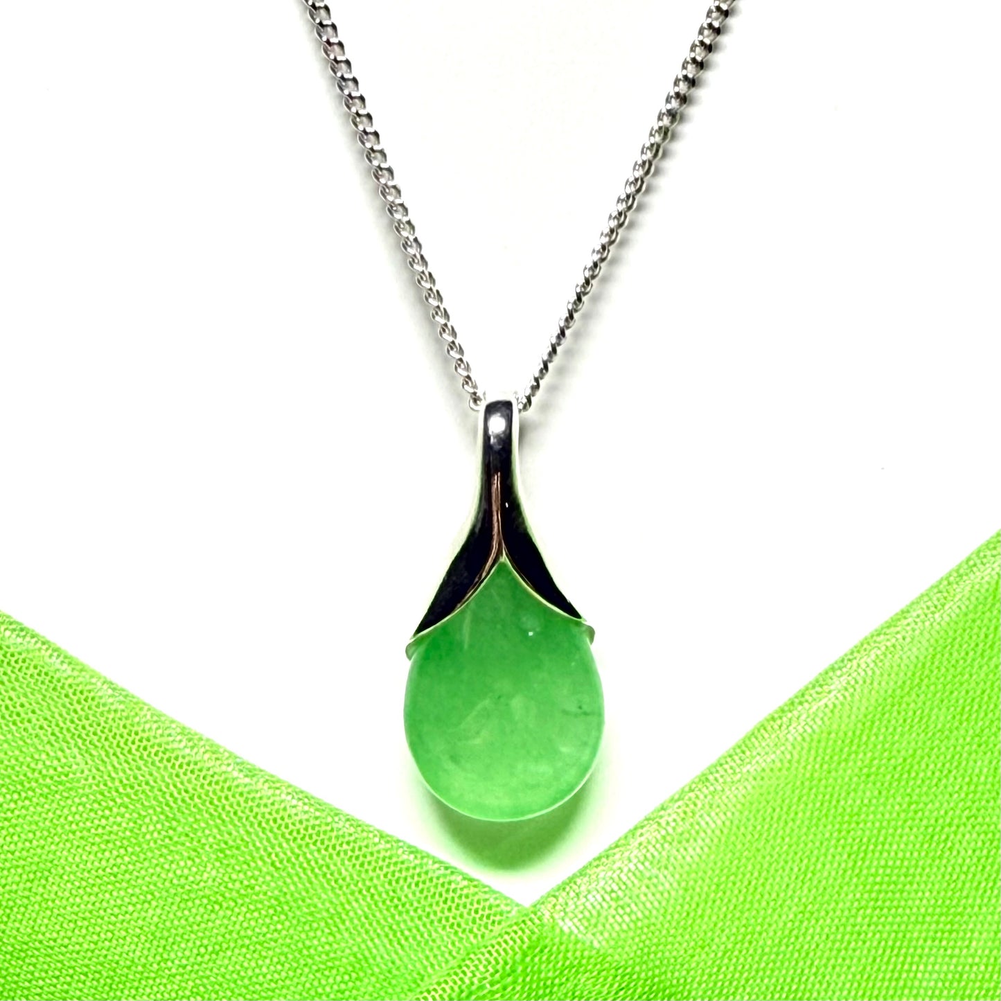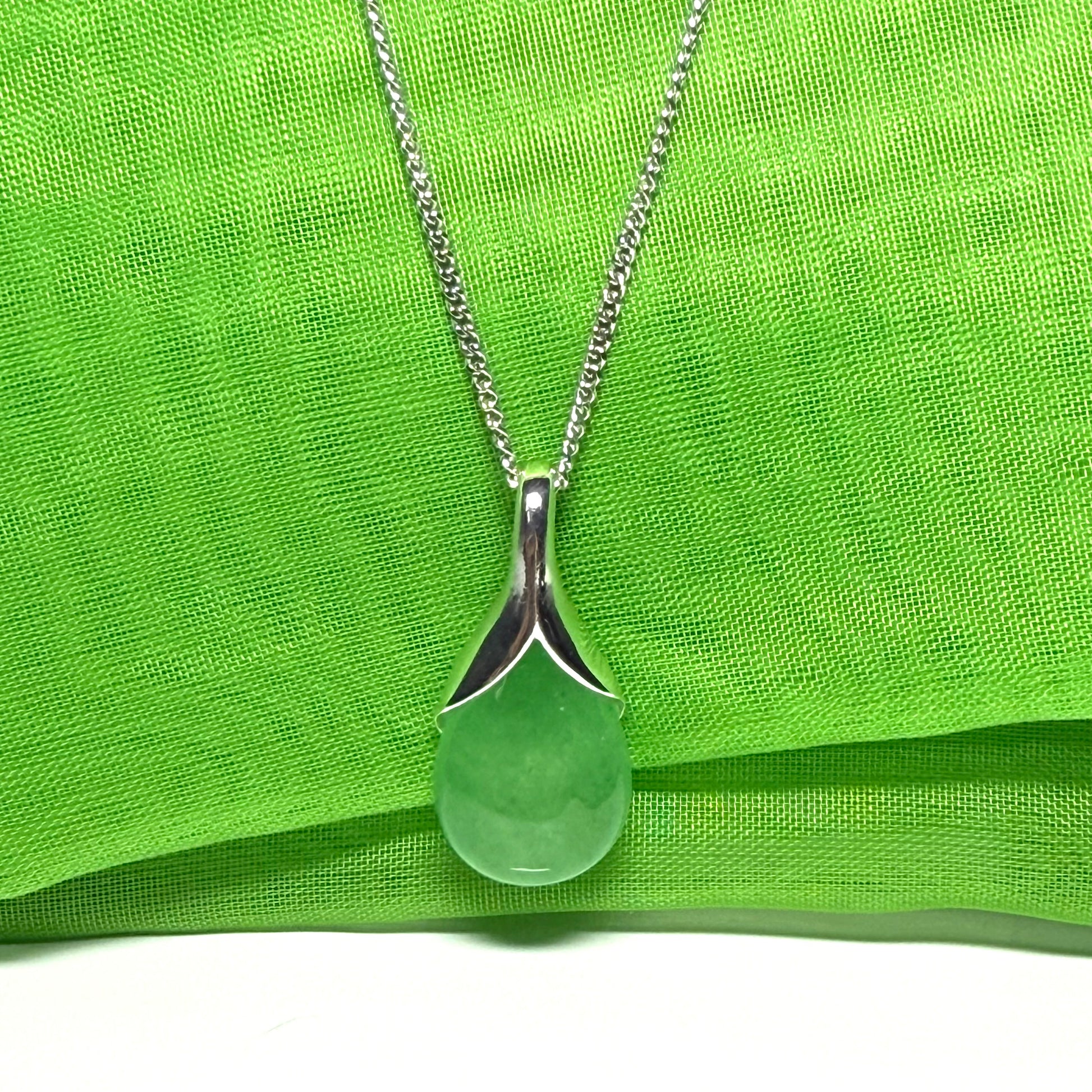 Why not embrace the allure of a real jade necklace with this stunning pear shaped sterling silver pendant necklace