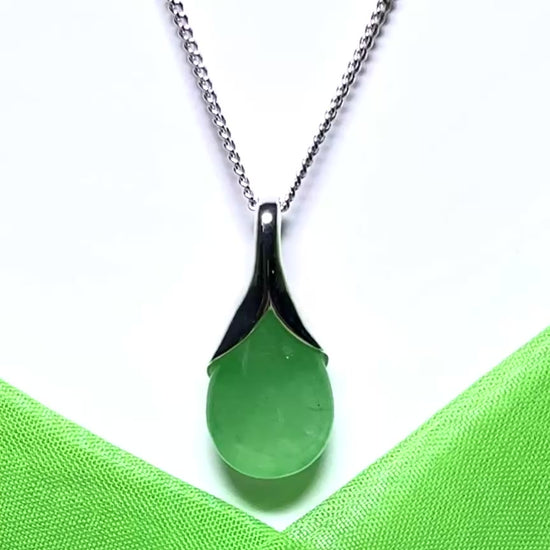 Real green jade necklace in a teardrop or pear shaped, a timeless designed pendant with a chain included