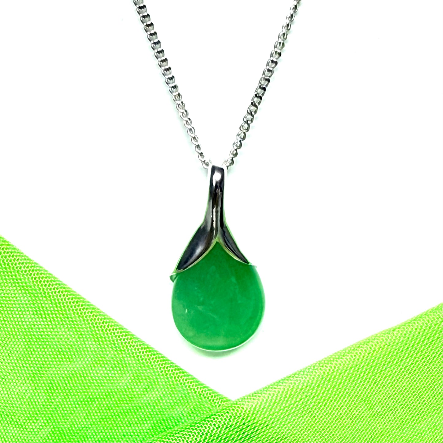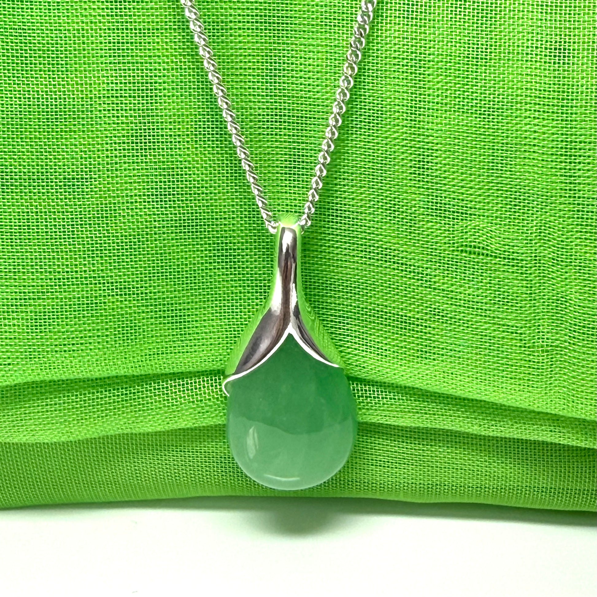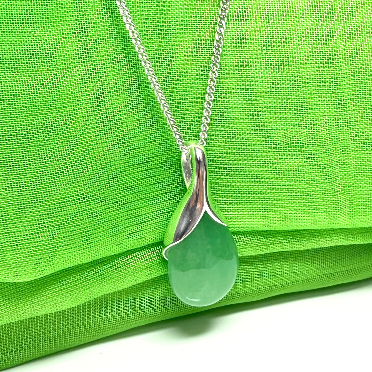 Why not embrace the allure of a real jade necklace with this stunning pear shaped sterling silver pendant necklace