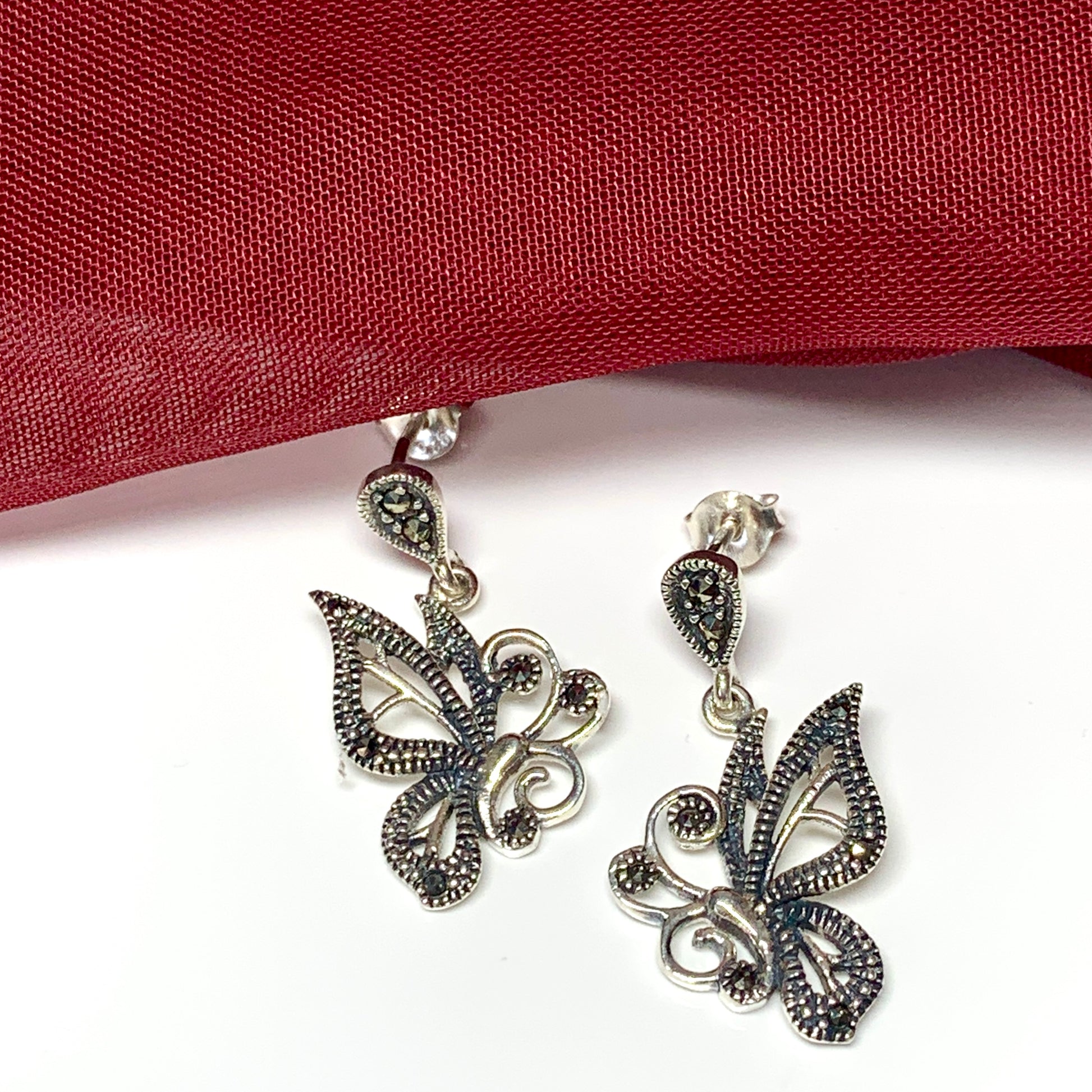 Watch a video of these gorgeous real marcasite butterfly drop earrings here