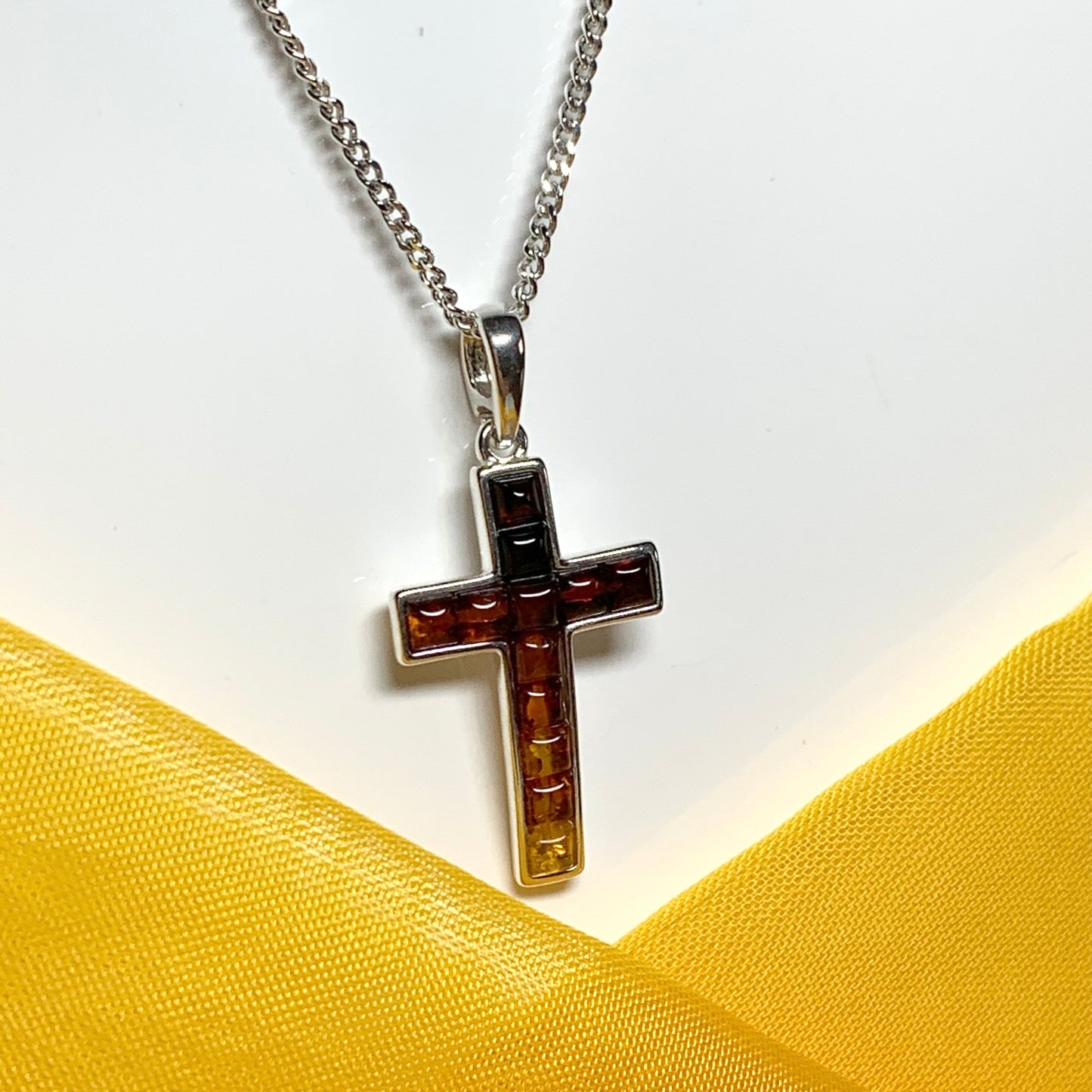 Real amber cross necklace sterling silver