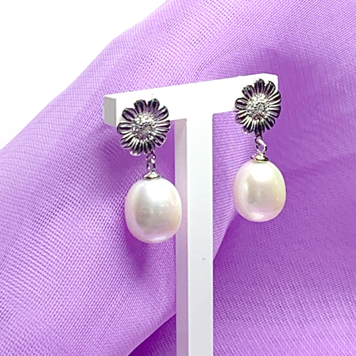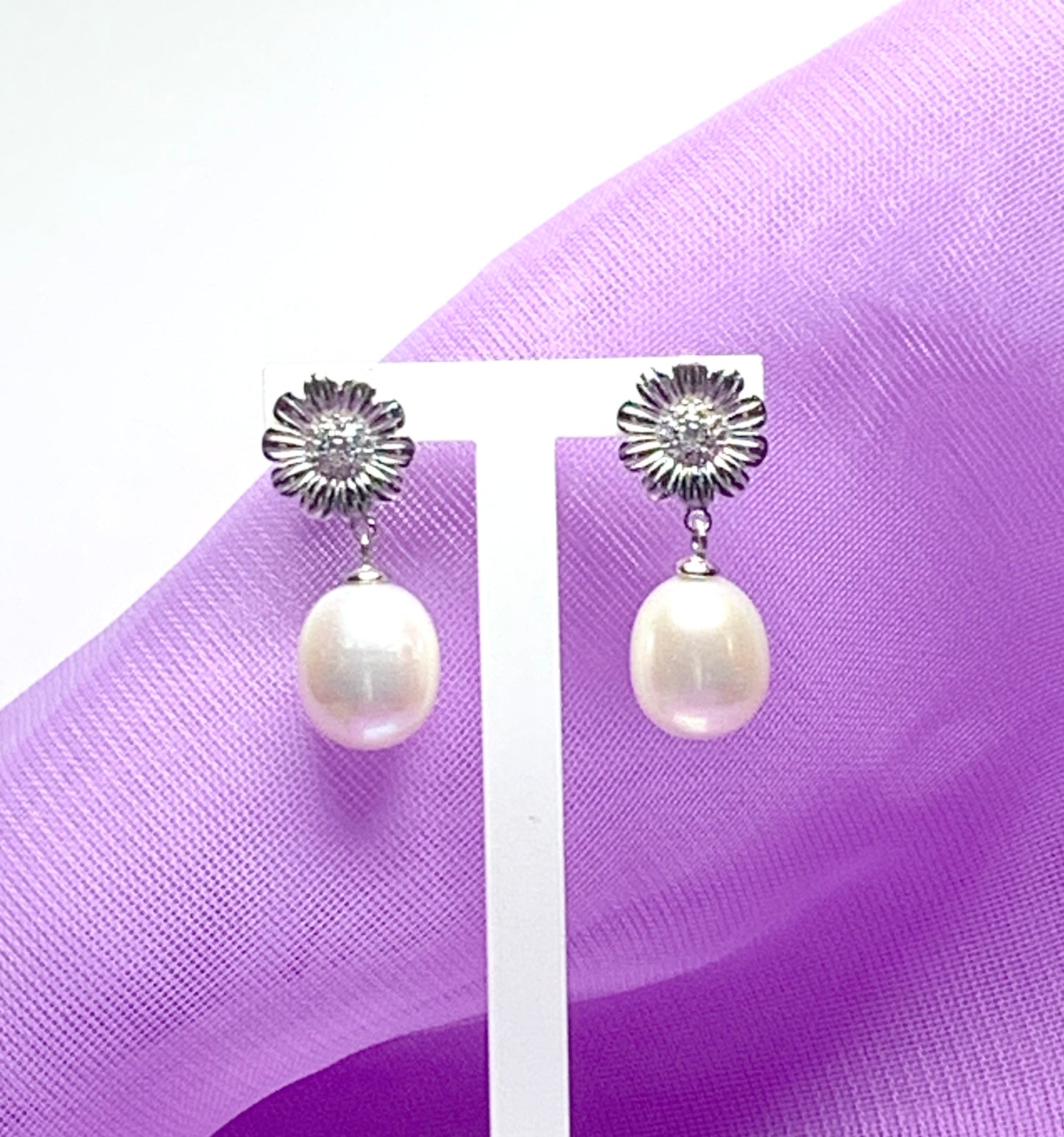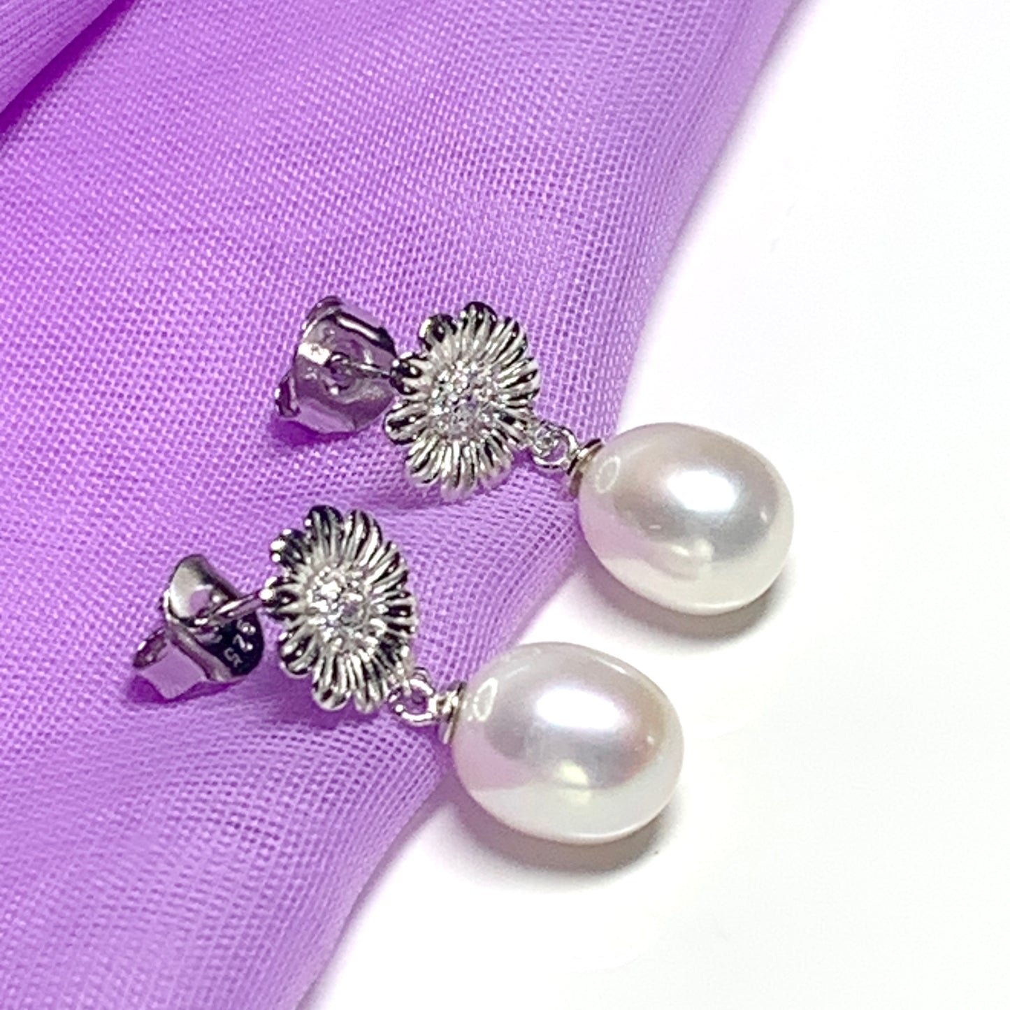 Made in shimmering solid 925 sterling silver that will shine and sparkle in the light as it reflects from the silver metal, the real freshwater pearl stones and the real sparkling cubic zirconia stones in the ears