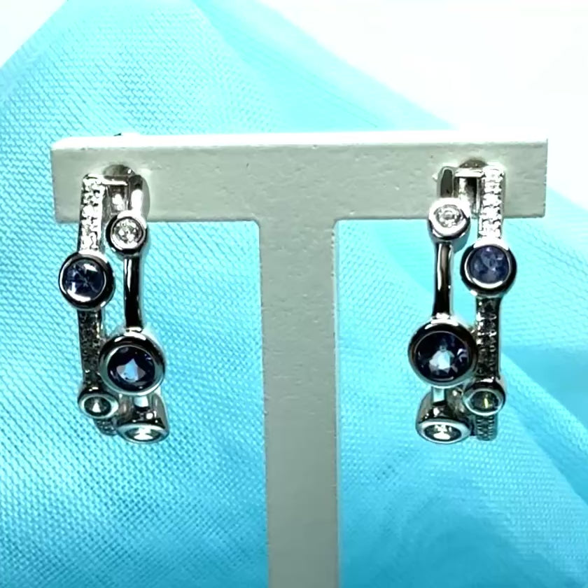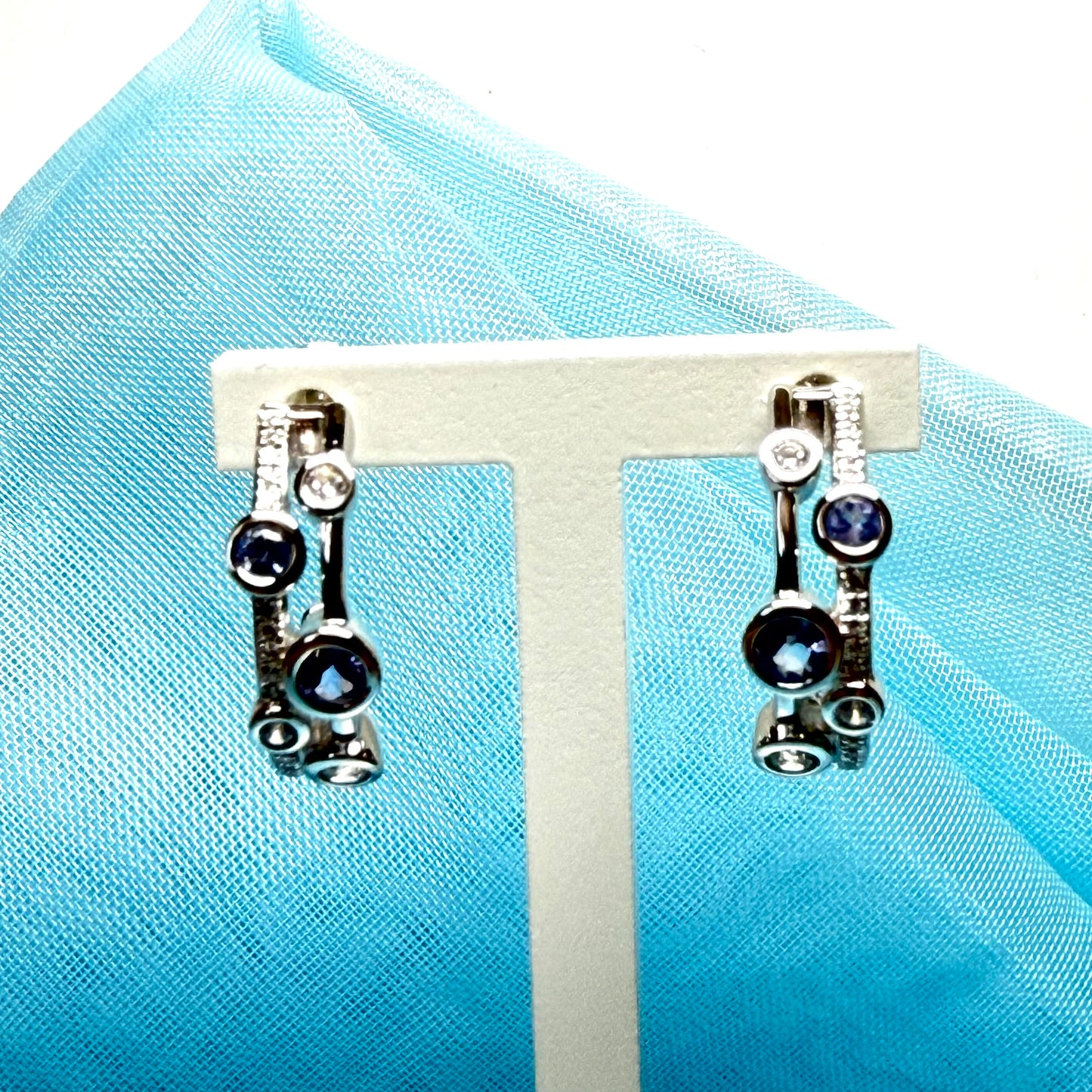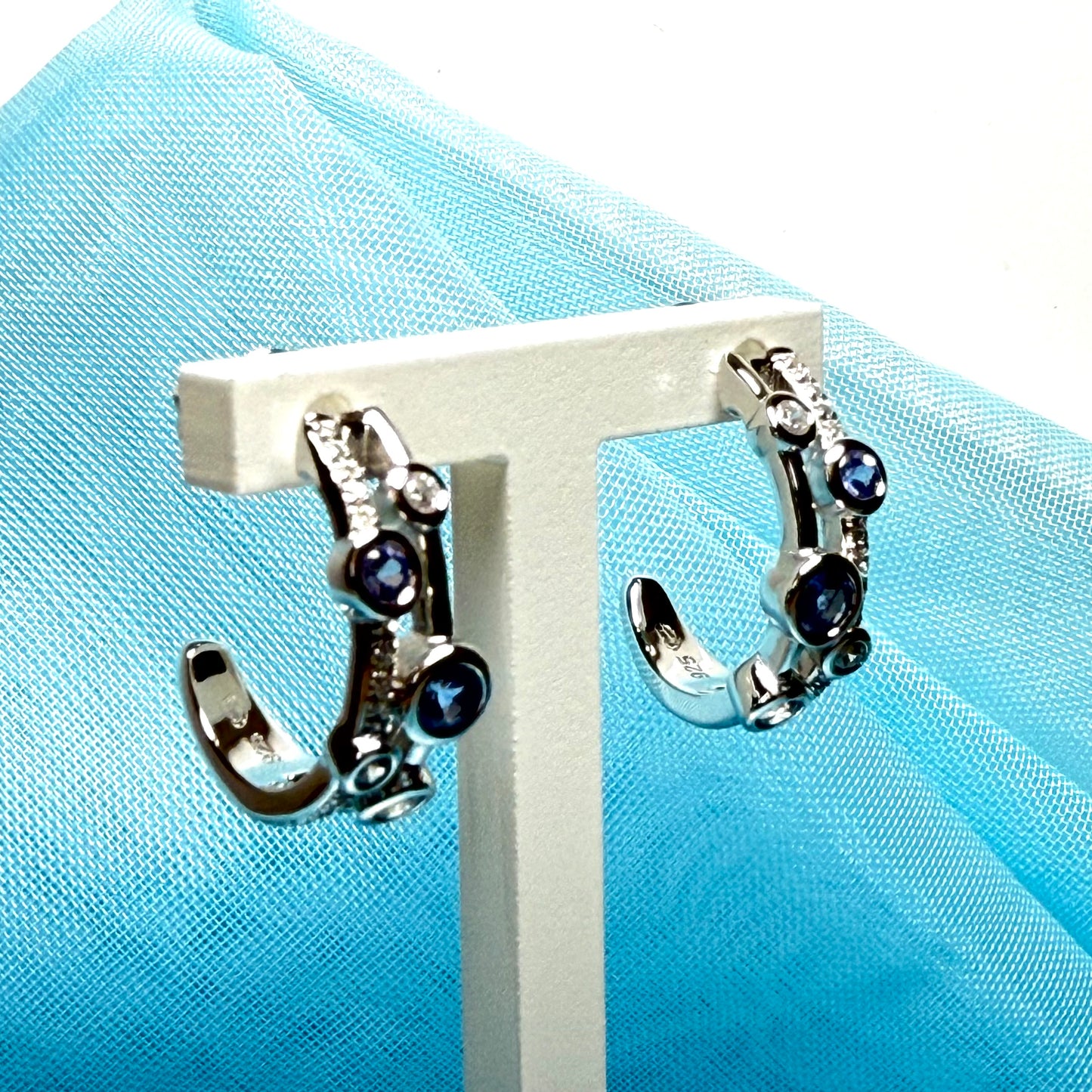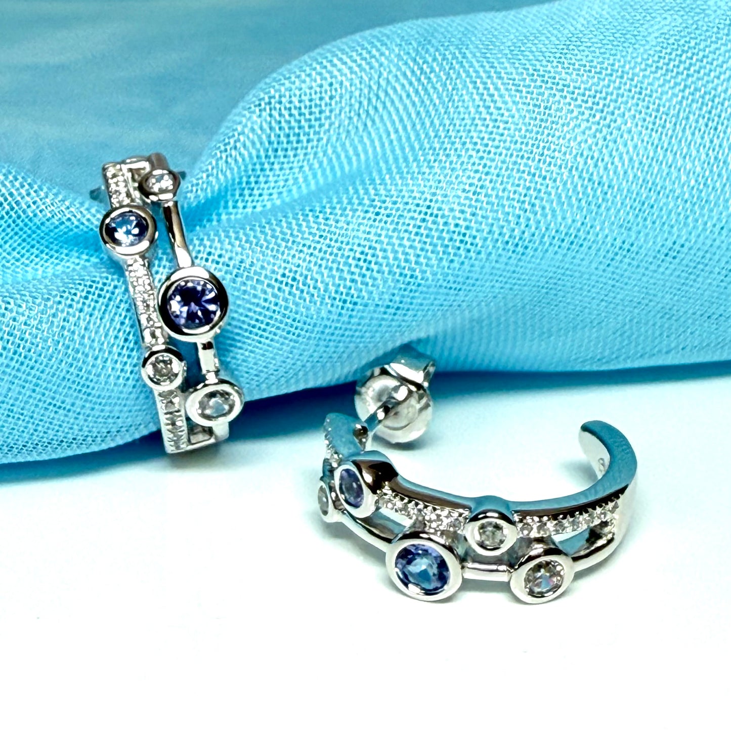 Real tanzanite and cubic zirconia half hoop earrings sterling silver
