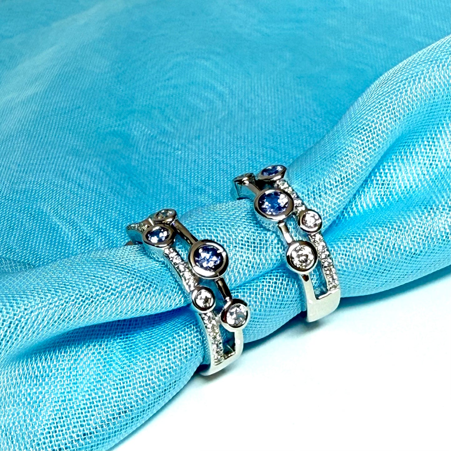 A beautiful pair of real tanzanite and cubic zirconia half hooped earrings crafted from solid sterling silver