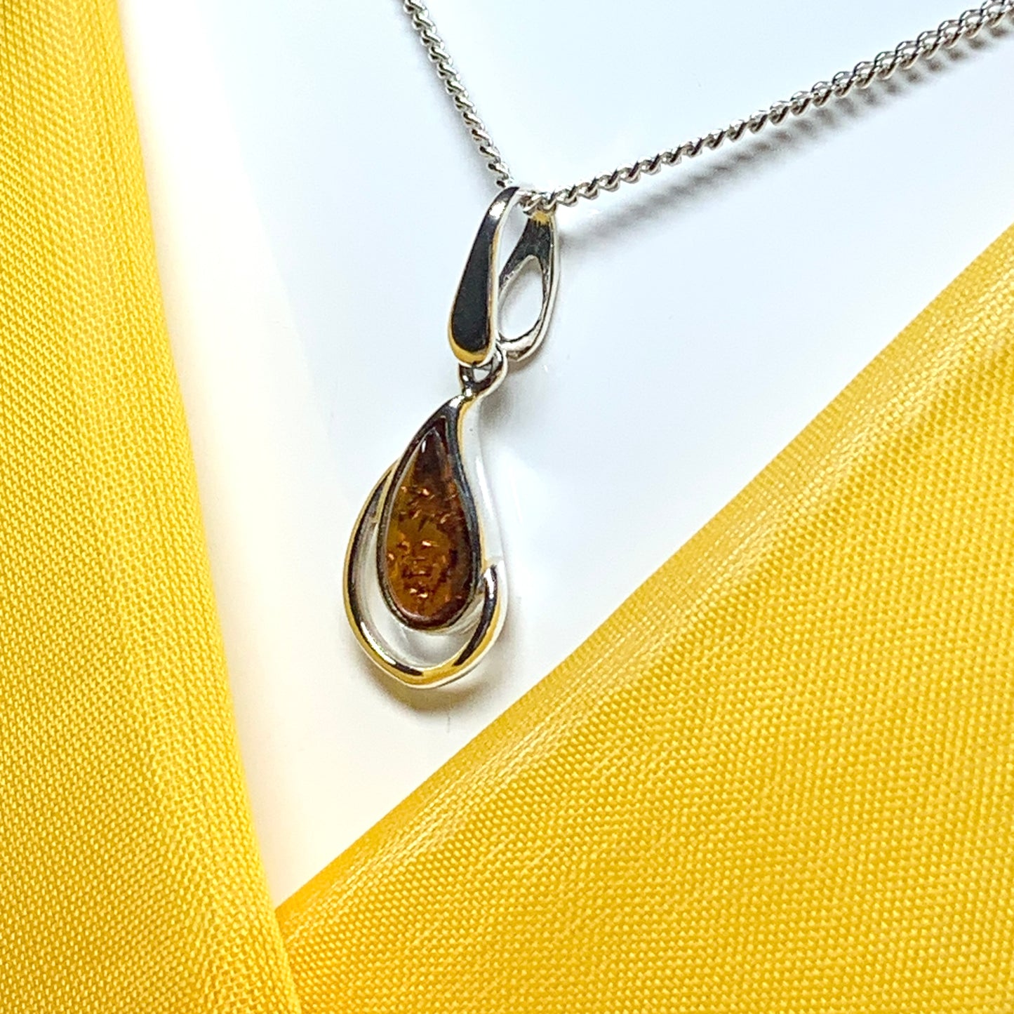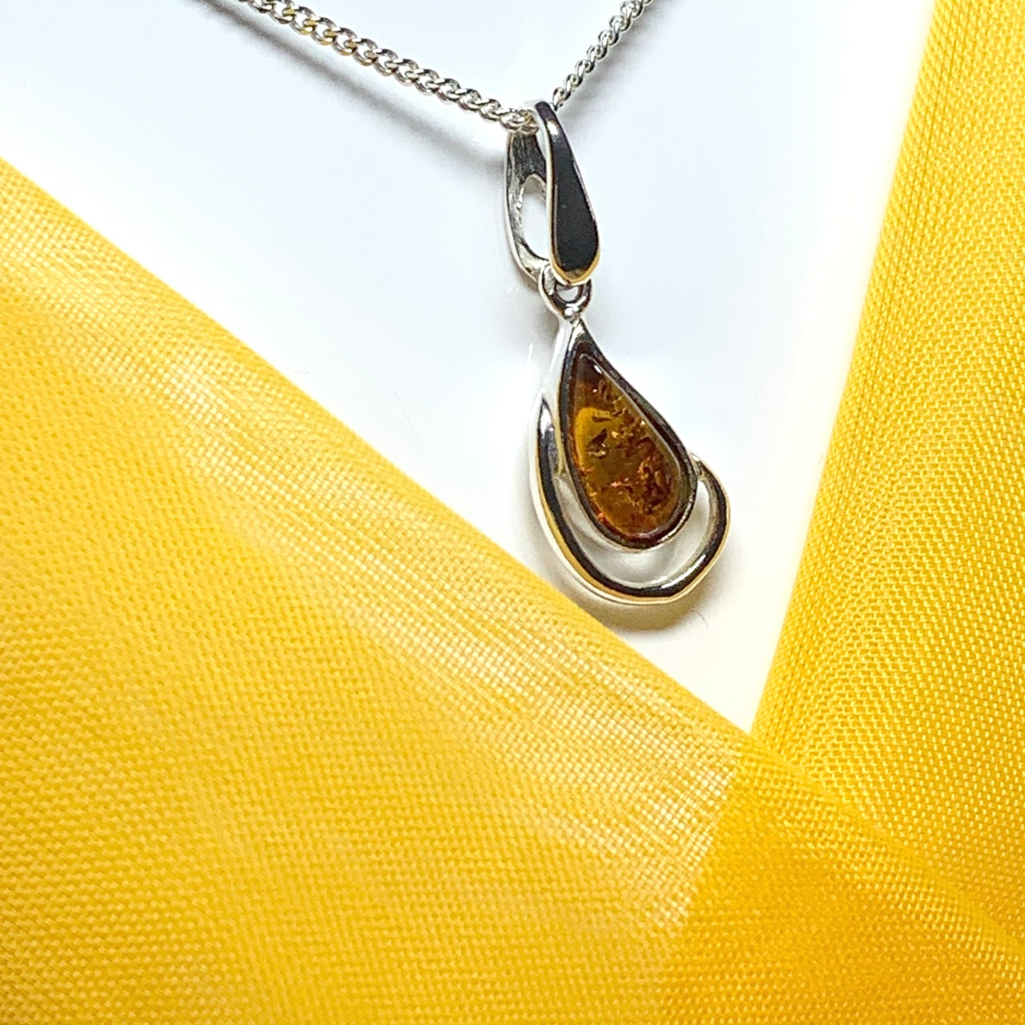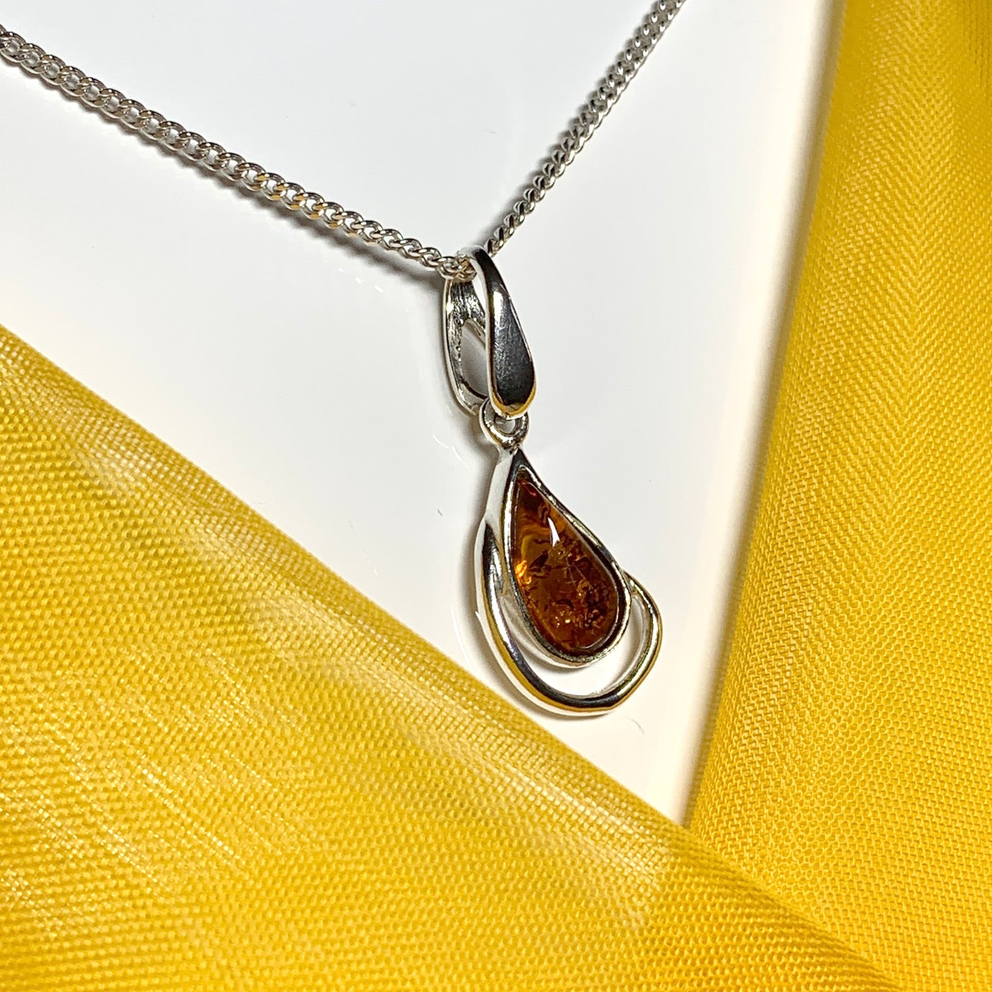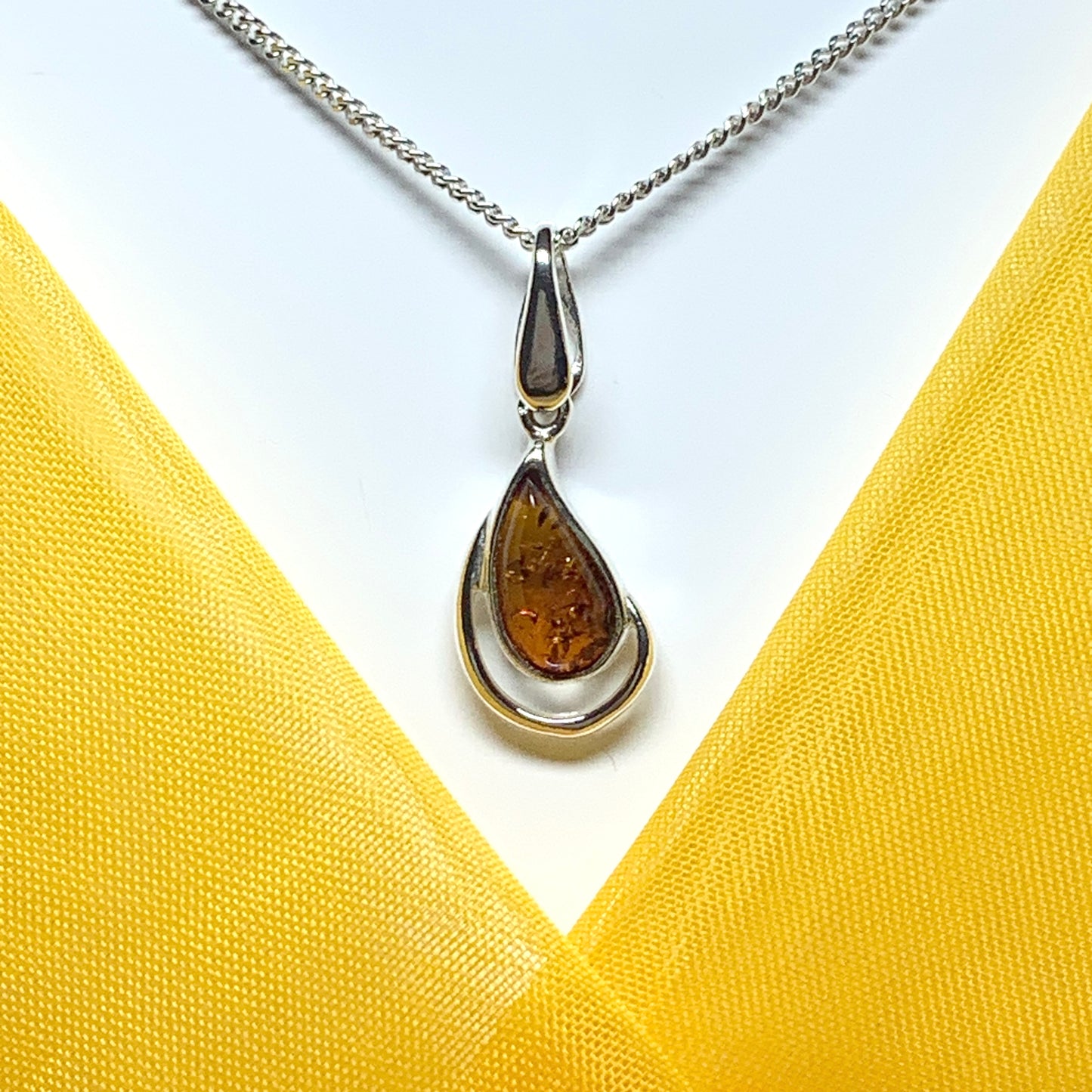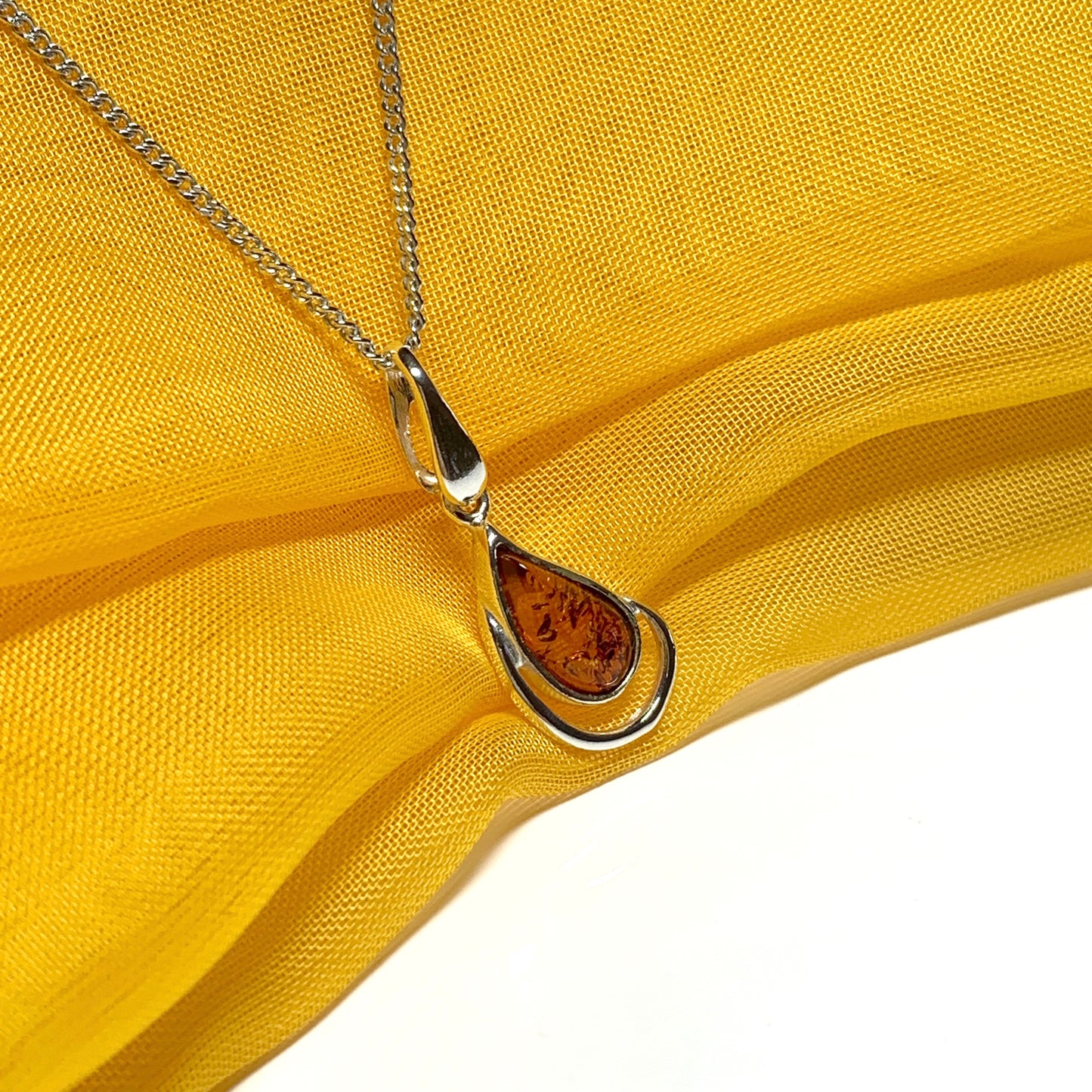 Real teardrop pear shaped amber fancy necklace sterling silver