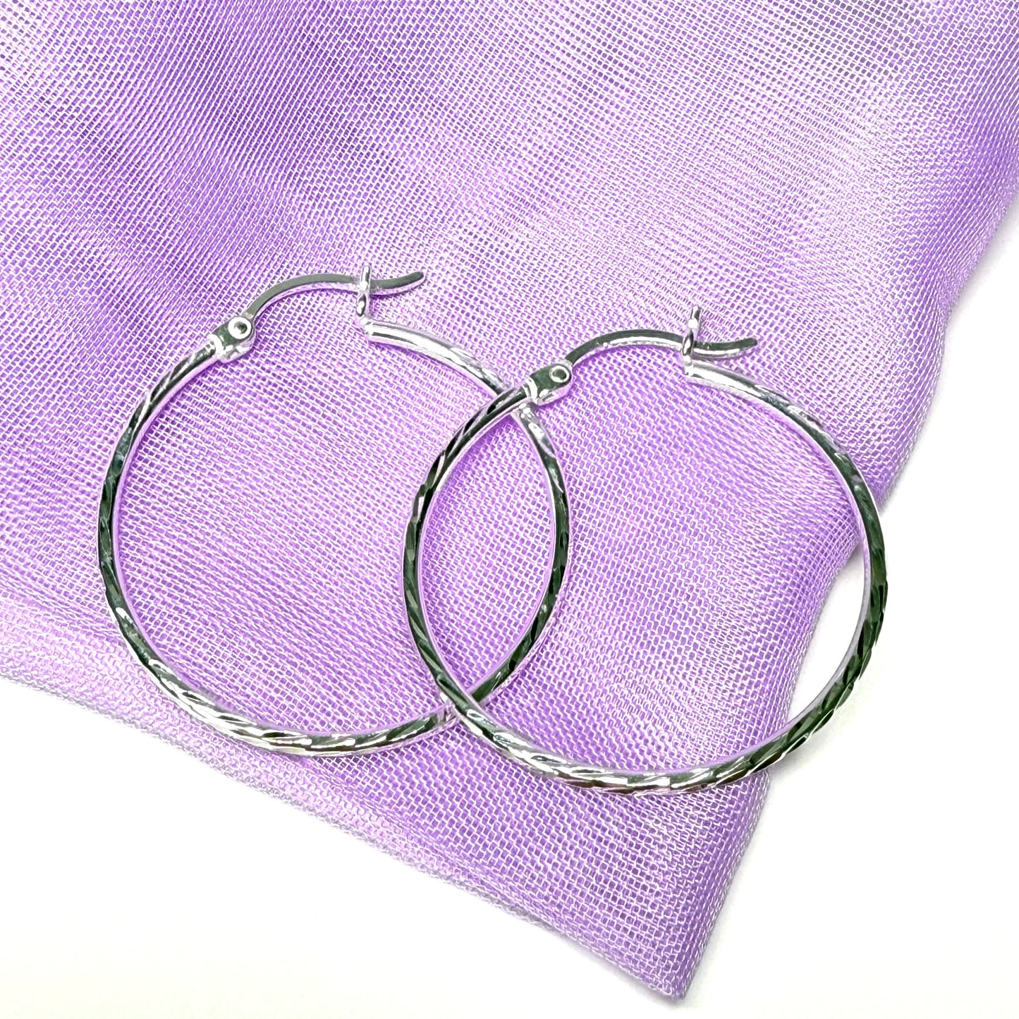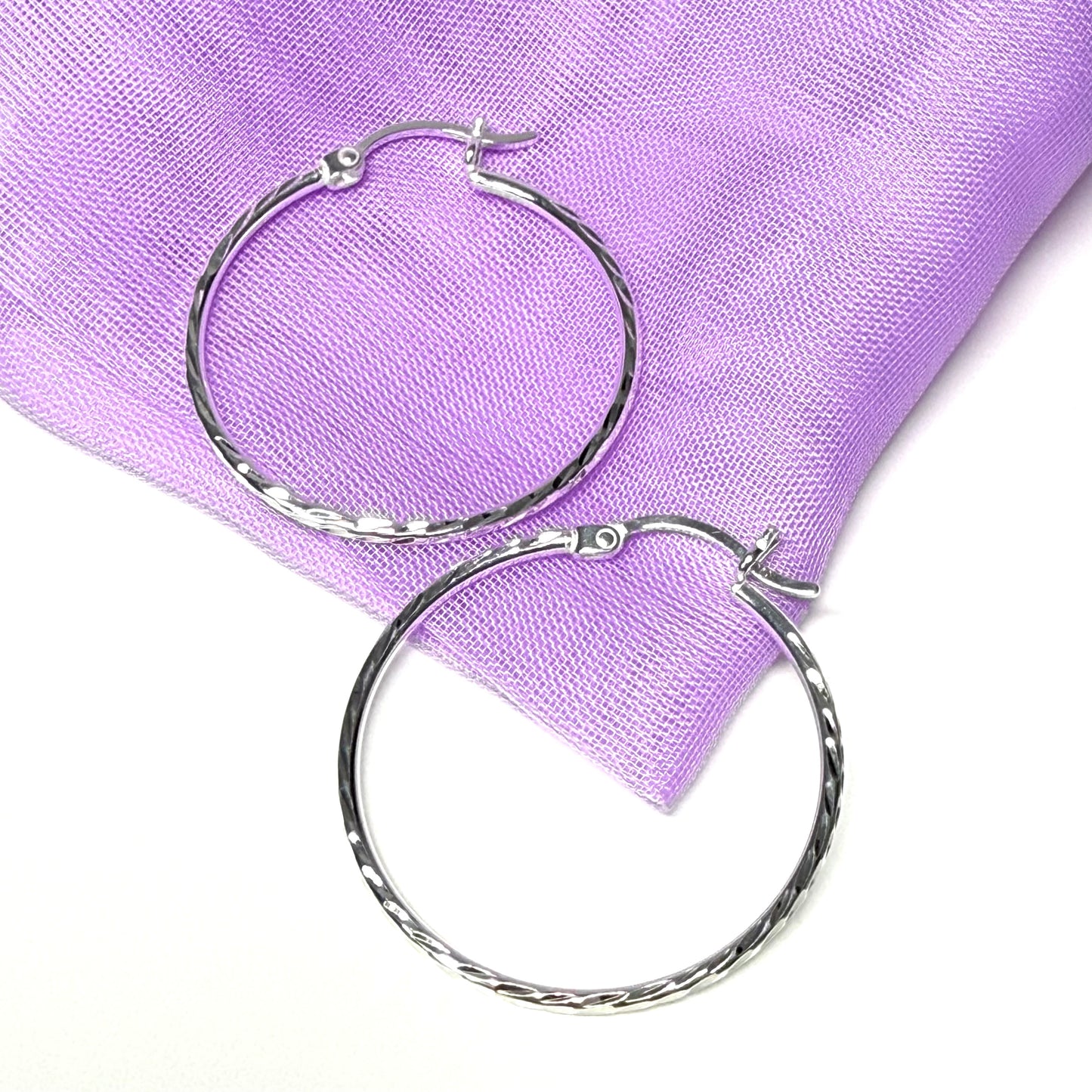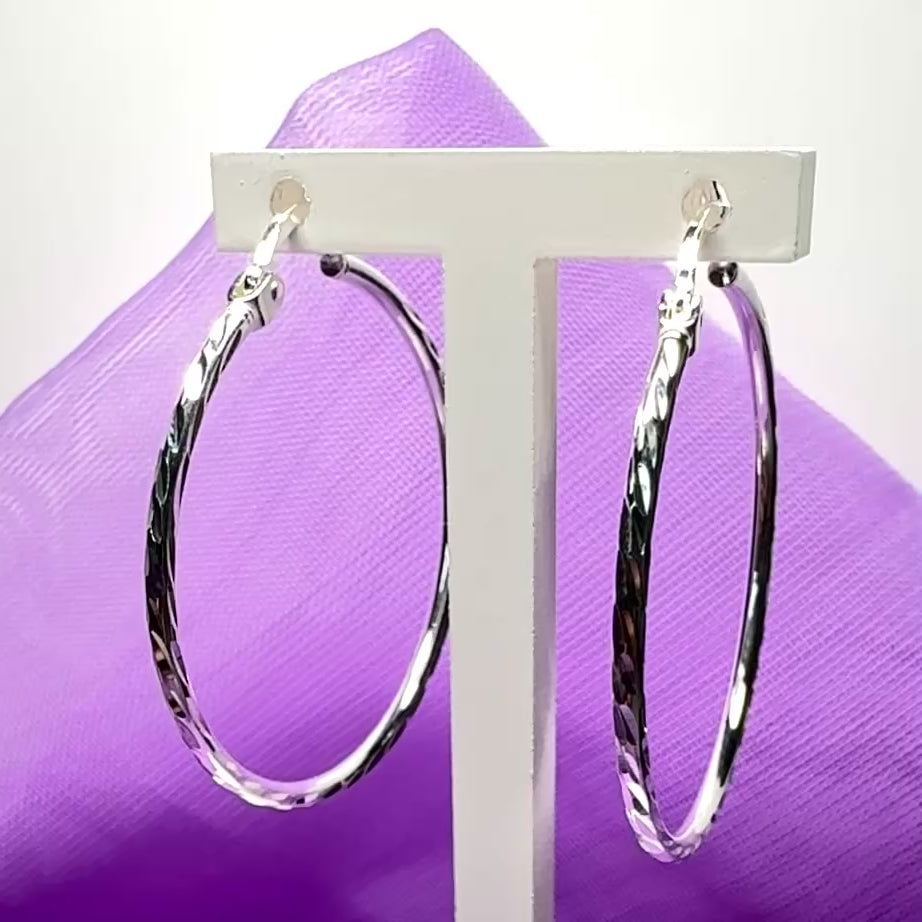 Sterling Silver Patterned Hoop Earrings