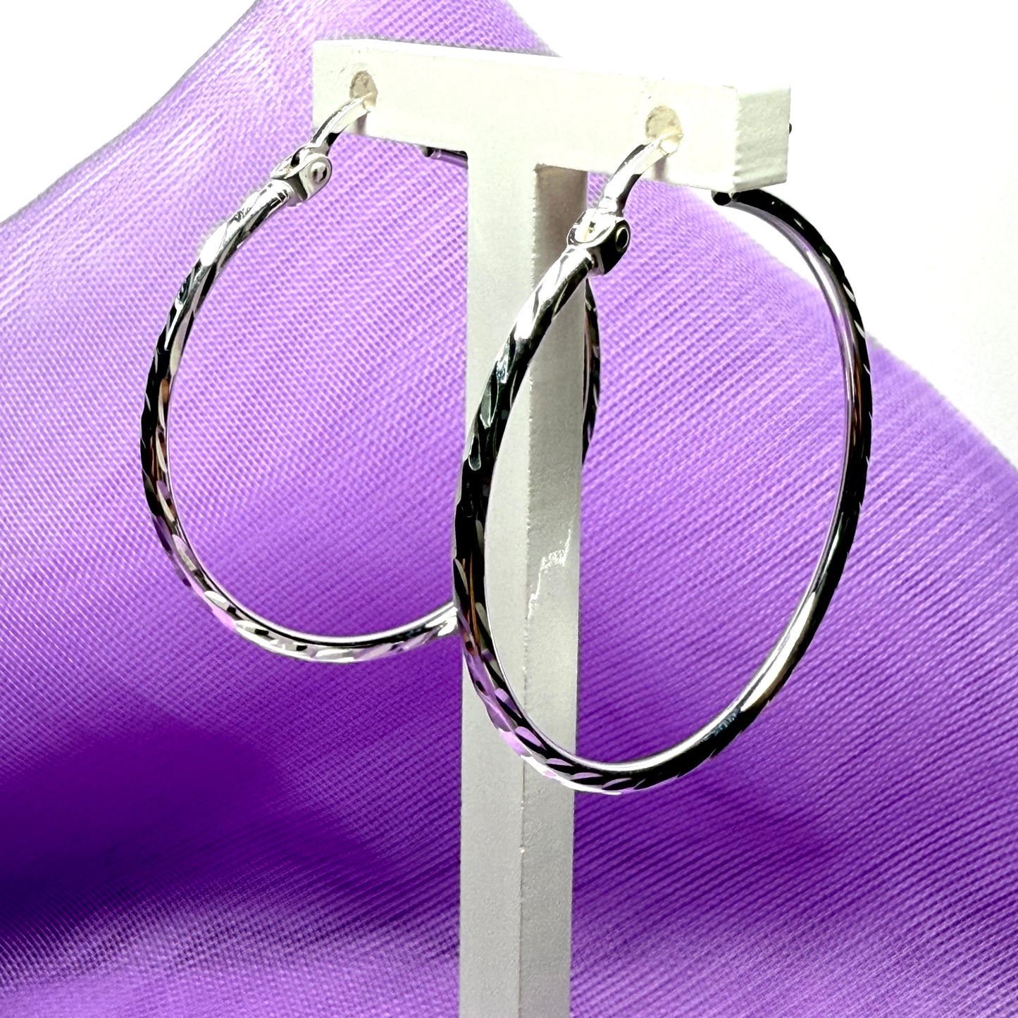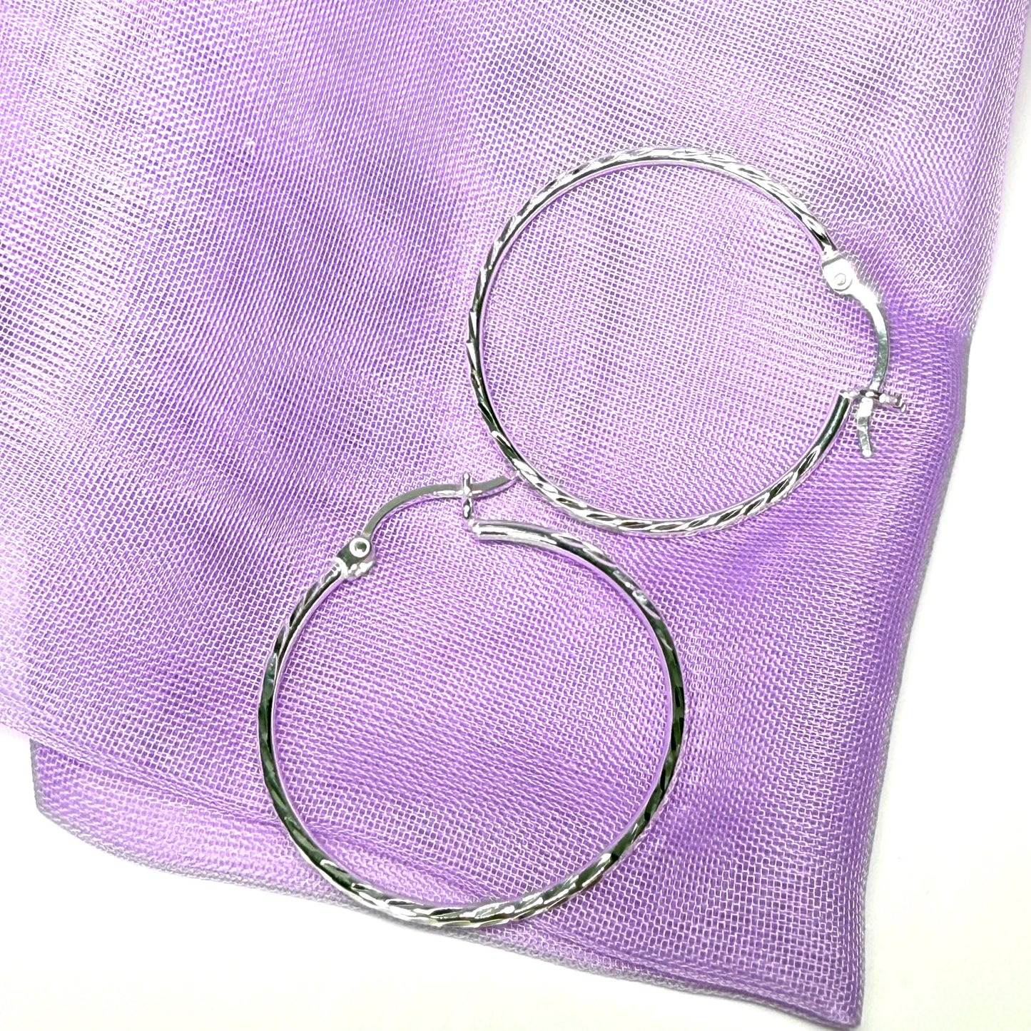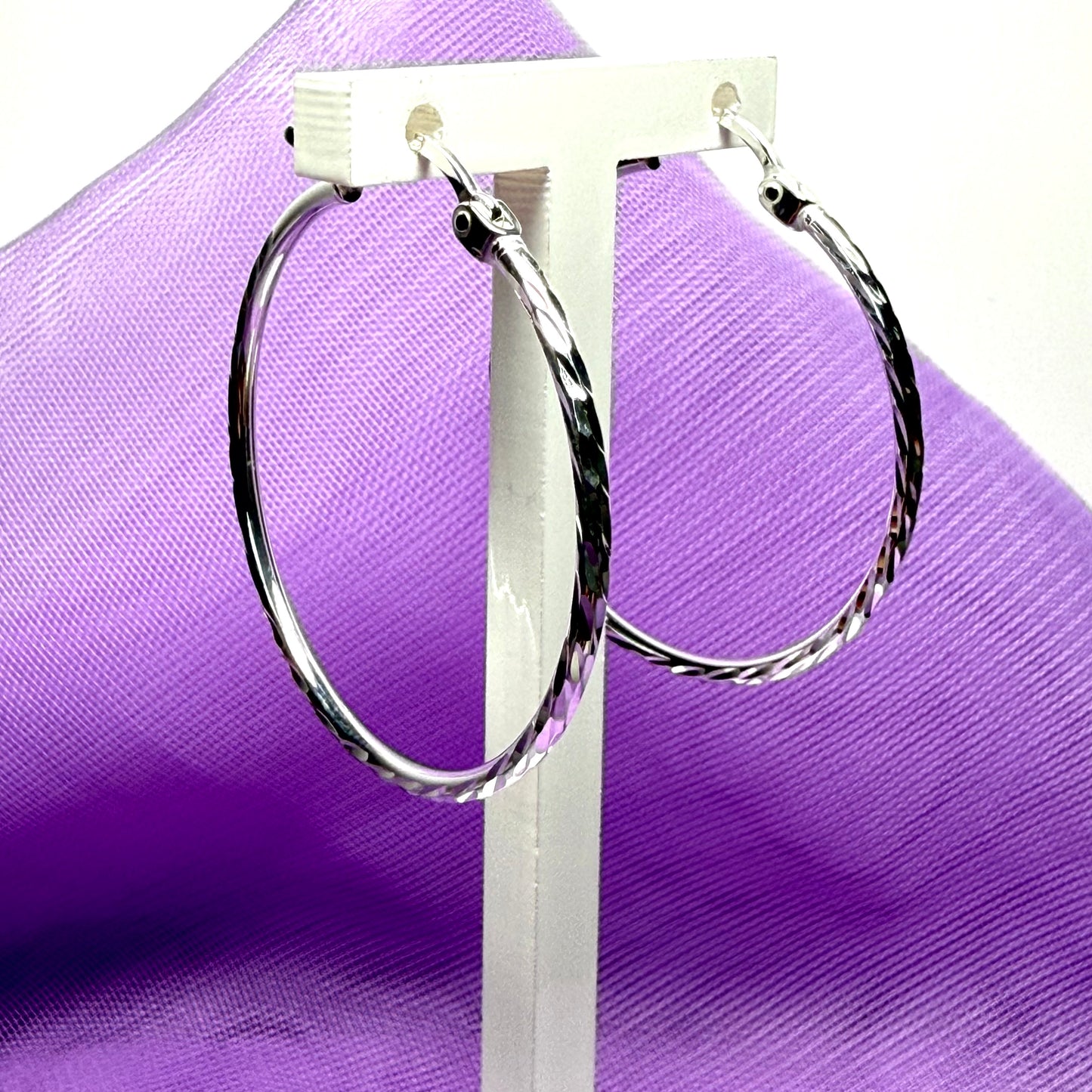 Sterling Silver Patterned Hoop Earrings