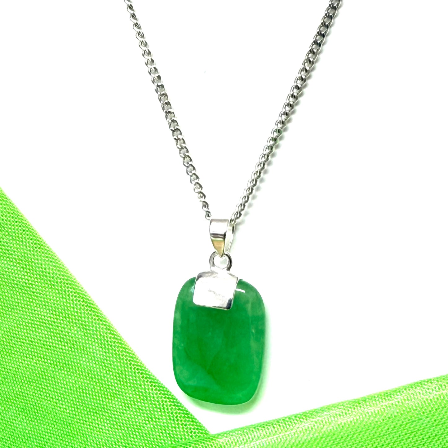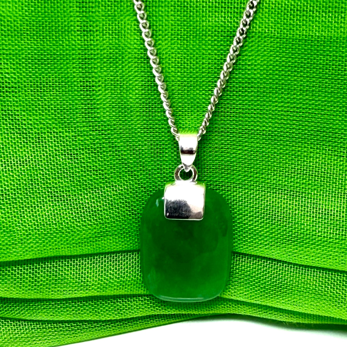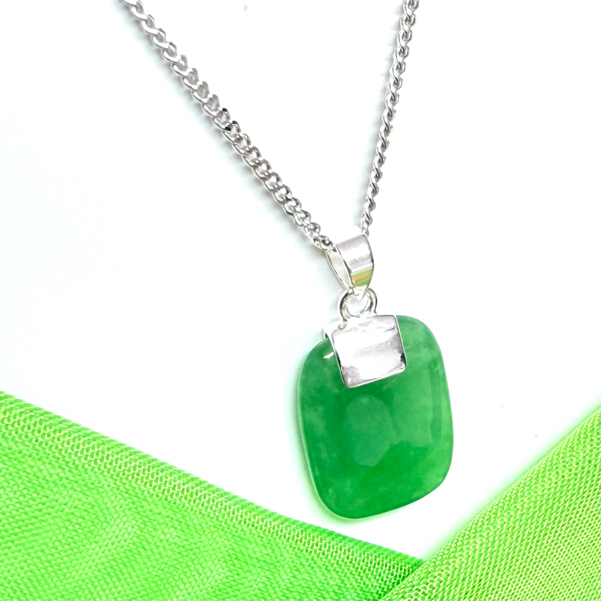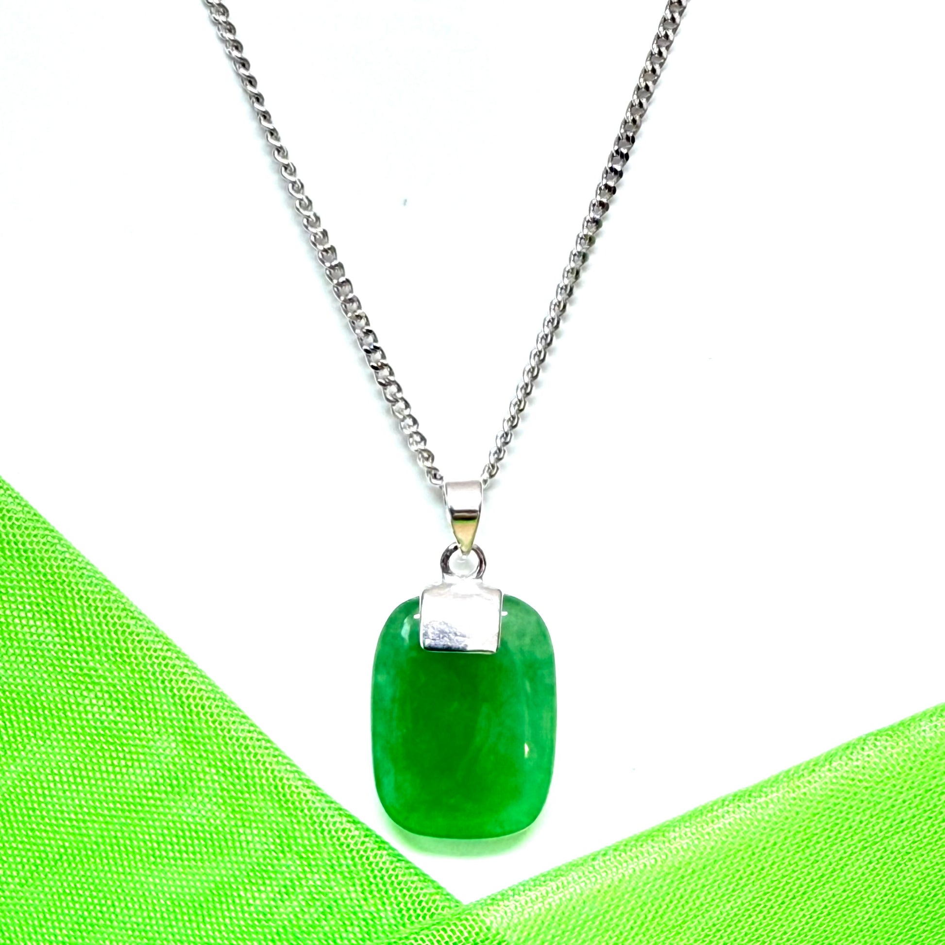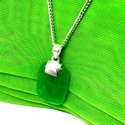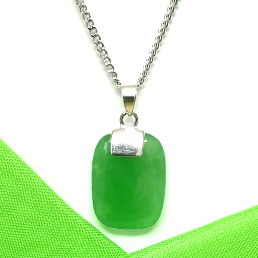 Why not add a touch of elegance to your outfit with this stunning cushion shaped silver real green jade necklace