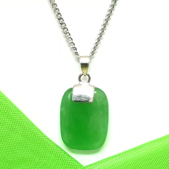 Cushion shaped sterling silver real green jade necklace pendant that is a stunning present to receive as a gift